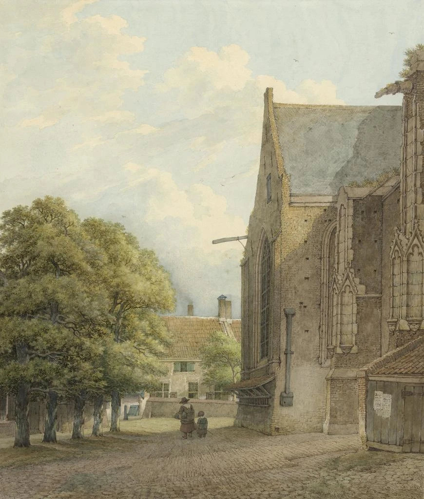 Lo stile di Daniël Kerkhoff si caratterizza per un approccio realistico, dove ogni dettaglio è accuratamente osservato e reso con precisione. In "L'église de Rhenen", l'artista utilizza una palette di colori sottile, giocando con le sfumature per evocare le variazioni di luce durante tutta la giornata. Le ombre delicate e i riflessi luminosi sulle pietre della chiesa creano un'atmosfera quasi poetica, dove il tempo sembra sospeso. Quest'opera si distingue per la sua capacità di evocare una sensazione di serenità e raccoglimento, evidenziando al contempo la maestà dell'architettura religiosa. La composizione è equilibrata, ogni elemento è posizionato con cura per guidare lo sguardo dello spettatore attraverso il quadro, rivelando così la profondità della scena.