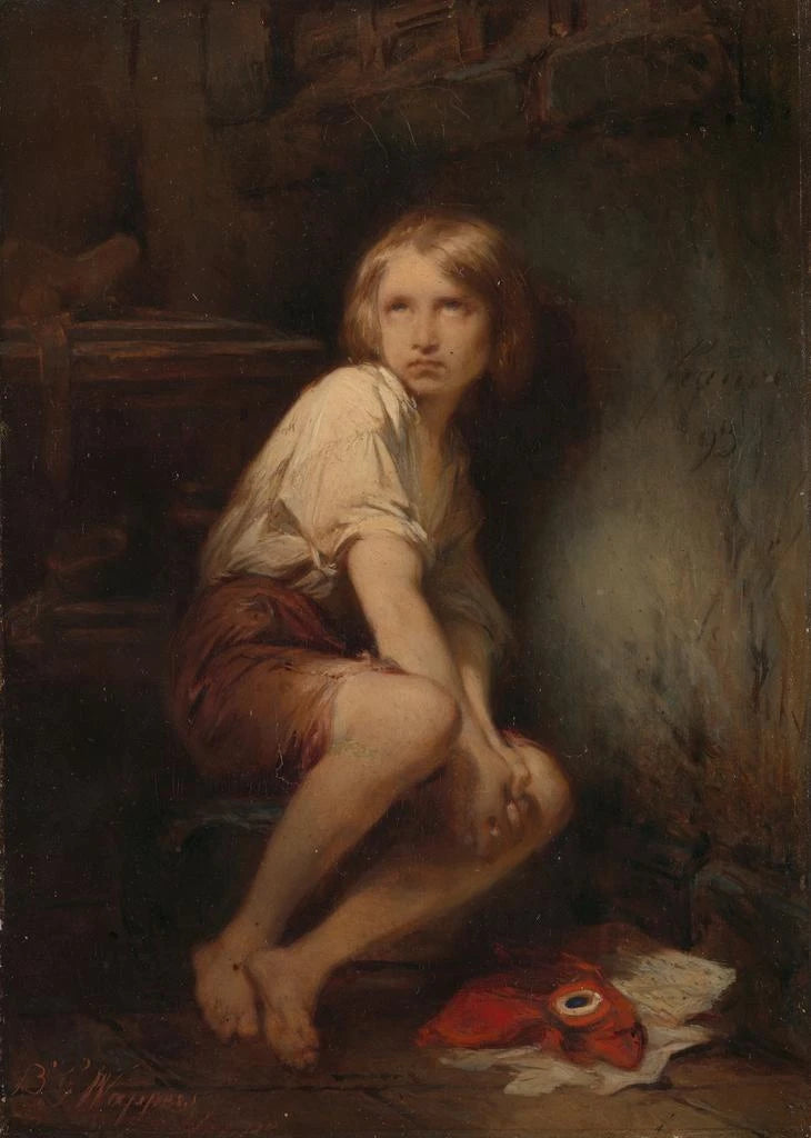 Gustaf Wappers, pittore belga del XIX secolo, è riconosciuto per le sue opere storiche che catturano momenti chiave della storia europea. Formato all'Accademia reale delle belle arti di Bruxelles, è stato influenzato dal neoclassicismo e dal romanticismo, cercando di trasmettere emozioni forti attraverso le sue composizioni. Wappers ha spesso scelto soggetti storici, come Louis XVII, per evocare riflessioni sulla condizione umana e il passare del tempo. La sua opera è caratterizzata da una grande maestria tecnica e da una sensibilità particolare ai drammi storici, rendendolo un artista imprescindibile della sua epoca.