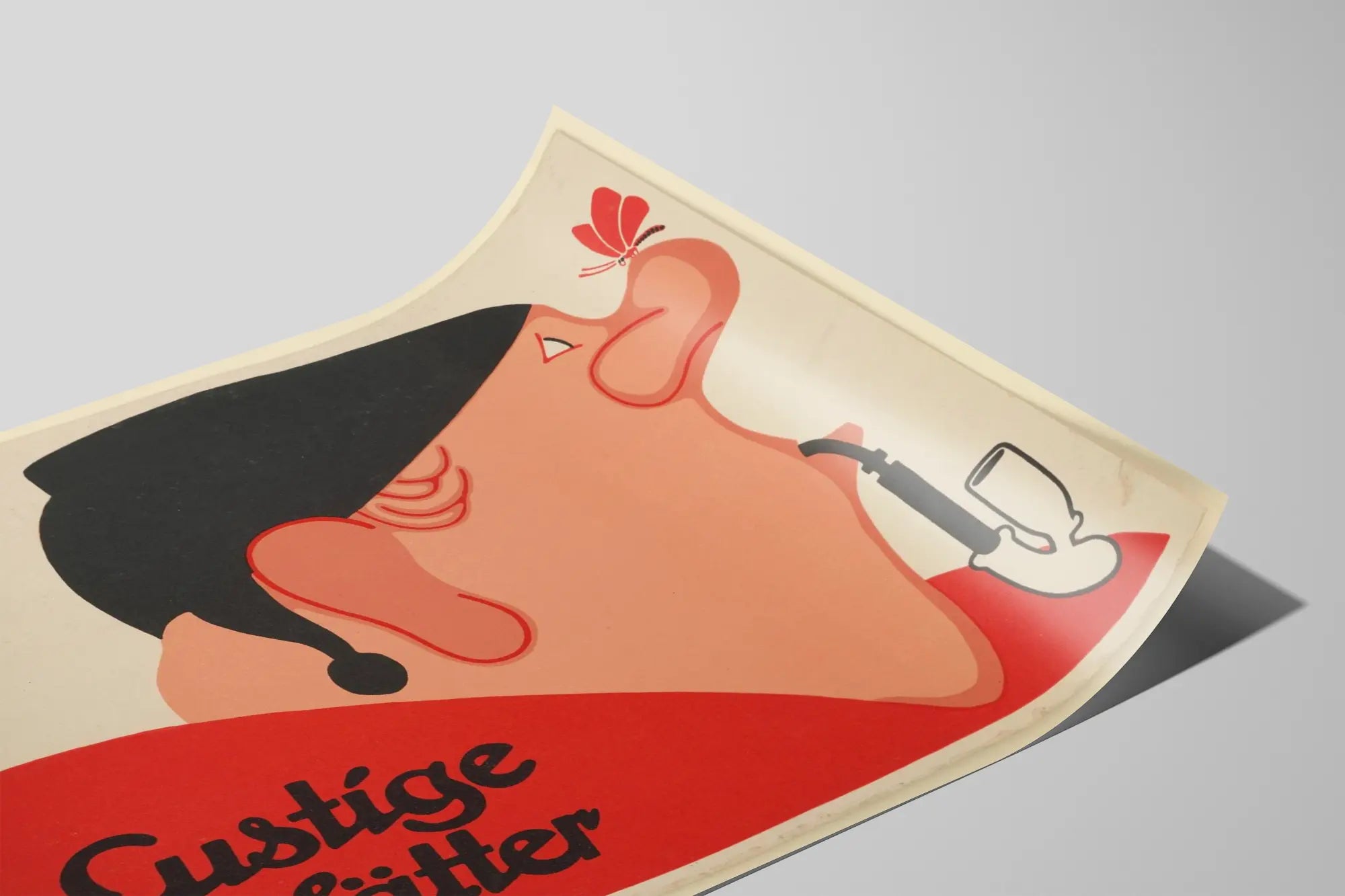 Découvrez cette affiche vintage originale intitulée "Lustige Blätter", créée par l'artiste Julius Klinger. Ce poster se distingue par son style graphique simple et percutant, utilisant une palette de couleurs limitée à des tons rouges, noirs et beiges qui apportent une touche rétro et moderne à la fois. La composition présente un personnage au visage au profil caricatural, portant une coiffe noire et fumant une pipe blanche, sur laquelle se pose délicatement un petit papillon rouge. Ce contraste entre le détail du papillon et la silhouette épurée du personnage attire le regard et apporte une note de fraîcheur et d'humour au visuel. Cette décoration murale, avec ses lignes claires et ses formes minimalistes, est idéale pour habiller un mur avec une pièce graphique forte, qui saura insuffler une ambiance vintage et artistique à votre intérieur. L'affiche s'adresse notamment aux amateurs d'art graphique, de design des années passées, ainsi qu'à ceux qui recherchent une décoration murale originale pour un salon, un bureau ou un espace créatif. La typographie noire à l'aspect calligraphié et arrondi des mots "Lustige Blätter" se détache nettement sur un fond rouge, renforçant la lisibilité et l'impact visuel de cette œuvre. La signature de Julius Klinger ajoute une valeur artistique notable à ce poster, qui peut être encadré ou simplement accroché au mur en format poster pour un effet contemporain. Cette affiche est une pièce de décoration murale qui mêle art graphique, humour visuel et élégance simplifiée. Elle s'intègre parfaitement dans des intérieurs modernes, vintage ou éclectiques, où elle apportera une note unique et raffinée. C’est un excellent choix pour personnaliser un espace tout en s’imprégnant de l’esprit créatif et joyeux que véhicule cette œuvre. Optez pour ce tableau mural au charme graphique affirmé pour transformer votre décoration intérieure avec originalité et style.