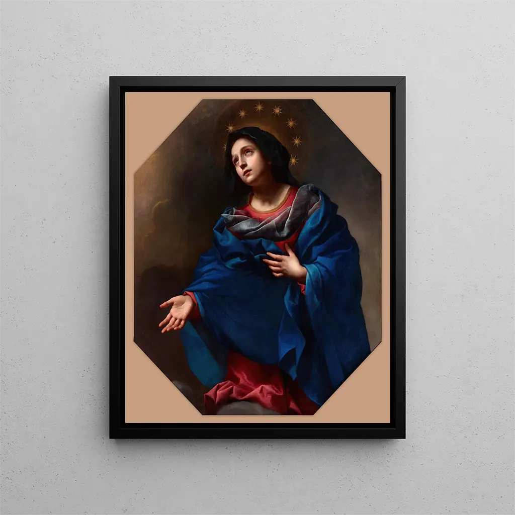 Nel affascinante universo dell'arte barocca, la "Madonna in gloria" di Carlo Dolci si erge come un'opera simbolo, catturando gli sguardi e risvegliando le anime. Questa rappresentazione della Vergine Maria, avvolta da una luminosità divina, trascende il semplice quadro per diventare una vera esperienza spirituale. L'artista, con il suo talento incommensurabile, riesce a catturare l'essenza stessa della fede e della devozione, offrendo allo spettatore un invito a contemplare la bellezza del sacro. Attraverso questa stampa d'arte, la magia dell'opera originale si rivela, permettendo a ciascuno di immergersi in un mondo dove l'arte e la spiritualità si intrecciano armoniosamente. Stile e unicità dell’opera La "Madonna in gloria" è un'ode alla bellezza femminile e alla dolcezza materna. Dolci, maestro del dettaglio e del colore, utilizza una palette delicata per creare sfumature che sembrano vibrare sotto la luce. La composizione, accuratamente orchestrata, mette in evidenza la Vergine, il cui volto radioso esprime una serenità infinita. I drappeggi del suo abito, sottilmente lavorati, evocano una leggerezza eterea, mentre lo sfondo, punteggiato di nuvole luminose, rafforza questa impressione di trascendenza. Ogni elemento dell'opera è pensato per suscitare un'emozione profonda, una connessione spirituale con il divino. La tecnica di Dolci, unendo precisione e sensibilità, conferisce a questo pezzo un’unicità che la distingue nel contesto dell’arte barocca. L’artista e la sua influenza Carlo Dolci, nato a Firenze nel XVII secolo, è un artista che ha saputo imporsi con il suo stile unico e la capacità di coniugare bellezza e spiritualità. Formatosi nell’atelier dei grandi maestri, sviluppa rapidamente un approccio personale, caratterizzato da un’attenzione minuziosa ai dettagli e da una palette di colori raffinata. La sua influenza non si limita alla sua epoca, poiché le sue opere continuano a ispirare numerosi artisti contemporanei. Attraverso la "Madonna in gloria", Dolci illustra non solo il suo talento eccezionale, ma anche la sua capacità di toccare l’anima umana attraverso l’arte. La sua visione artistica lo rende una figura imprescindibile del barocco, e il suo lascito