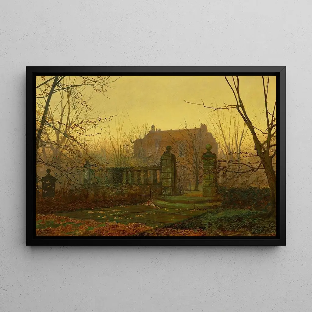 Matin d'automne : un'ode alla malinconia dorata Matin d'automne, capolavoro emblematico di John Atkinson Grimshaw, evoca un'atmosfera intrisa di serenità e nostalgia. La tela, immersa in tonalità calde di giallo e arancione, rappresenta un paesaggio urbano avvolto dalla nebbia mattutina. I dettagli minuziosi degli alberi con foglie dorate e degli edifici storici creano un'armonia visiva affascinante. La luce soffusa che filtra attraverso la nebbia conferisce all'intera scena una dimensione quasi onirica, invitando lo spettatore a una contemplazione pacifica. Grimshaw, maestro del chiaroscuro, riesce a catturare l'essenza effimera dell'autunno, trasformando un semplice mattino in una scena poetica. John Atkinson Grimshaw: il poeta della luce vittoriana John Atkinson Grimshaw, attivo durante l'epoca vittoriana, è riconosciuto per il suo stile unico che unisce il realismo a una sensibilità romantica. Influenzato dai prerafaelliti e dagli impressionisti, sviluppa una tecnica di pittura che mette in risalto gli effetti di luce e atmosfera. Le sue opere, spesso notturne, rivelano una fascinazione per i paesaggi urbani e la natura, testimonianza di un'epoca di piena industrializzazione. Grimshaw ha saputo distinguersi per la capacità di evocare emozioni profonde attraverso le sue rappresentazioni, rendendolo un artista imprescindibile del suo tempo. Il suo lascito perdura, ispirando molti artisti contemporanei. Un acquisto decorativo con molteplici vantaggi La riproduzione di Matin d'automne è un pezzo decorativo ideale per arricchire il vostro interno, sia in un soggiorno, in uno studio o in una camera da letto. La sua palette di colori caldi e l'atmosfera rilassante ne fanno una scelta perfetta per creare un ambiente accogliente. La qualità della riproduzione garantisce una fedeltà notevole ai dettagli dell'opera originale, permettendo di godere appieno della bellezza di questa tela. Integrando questo quadro nella vostra decorazione, portate un tocco di eleganza e raffinatezza, celebrando al contempo il talento di un maestro della pittura. Quest'opera non è solo un'aggiunta estetica, ma anche una fonte di ispirazione quotidiana.