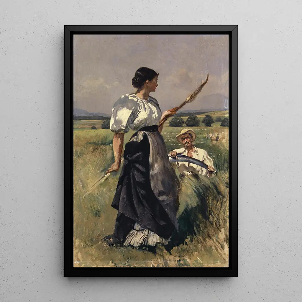 Frank Buchser, nato nel 1820, è un pittore svizzero la cui opera si inserisce nel movimento realista. La sua carriera è segnata da un interesse profondo per le scene della vita quotidiana, in particolare quelle delle classi lavoratrici. Influenzato dai movimenti artistici del suo tempo, cerca di rappresentare la verità sociale con una sensibilità particolare. La stampa d'arte di Faucheur e mietitore testimonia il suo impegno a immortalare il lavoro degli agricoltori, sottolineando allo stesso tempo l'importanza della natura nella loro esistenza. Attraverso questa opera, Buchser ci offre uno sguardo prezioso sulla vita rurale del suo tempo.