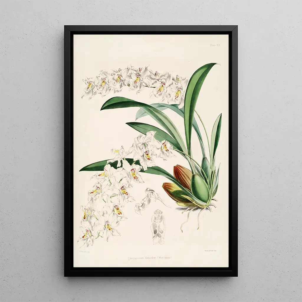 Questa riproduzione di Una monografia di Odontoglossum Pl18 è una scelta ideale per abbellire il vostro interno. Che sia in un soggiorno, in uno studio o in una camera da letto, questo quadro aggiunge un tocco di freschezza ed eleganza. La qualità di stampa garantisce una fedeltà notevole ai dettagli originali, permettendo di apprezzare appieno la bellezza dell'opera. L'attrattiva estetica di questa tela risiede nella sua capacità di integrarsi armoniosamente in vari stili di decorazione, suscitando l'ammirazione dei visitatori. Regalatevi questo pezzo unico che unisce arte e natura, e lasciatevi trasportare dal suo fascino senza tempo.