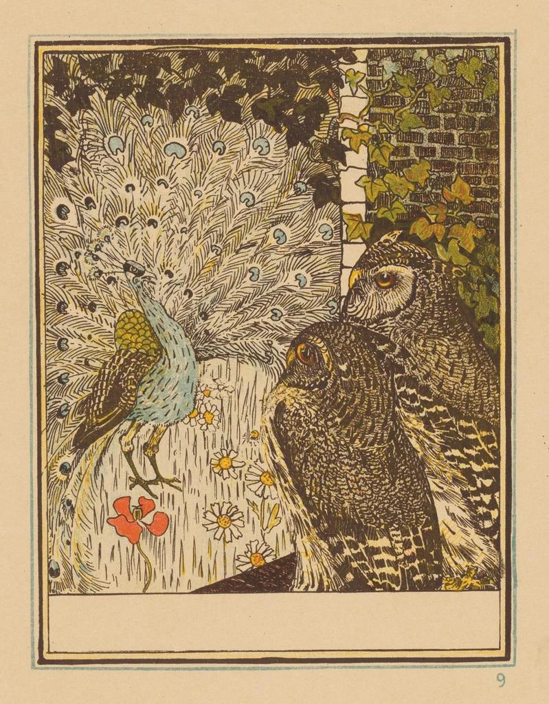 Mostrando un pavone e due gufi - Theo van Hoytema