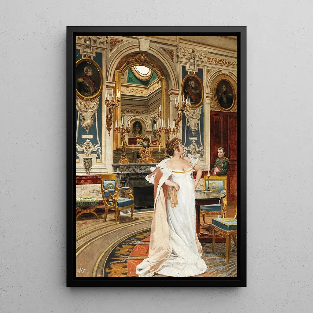 Napoléon e Joséphine : un amore intriso di potere e passione In questa opera coinvolgente, Oskar Rex dipinge Napoléon e Joséphine in un momento di intimità, dove i ricchi colori e i dettagli minuziosi evocano un'atmosfera di grandezza e romanticismo. Le tonalità dorate e le sfumature di blu creano un contrasto sorprendente, accentuando la maestà dei personaggi. La tecnica della pittura ad olio permette di rendere le texture degli abiti e dei volti con una precisione notevole, immergendo lo spettatore nell'universo dell'Impero francese. Questo quadro, vera ode all'amore, invita a una contemplazione dei sentimenti complessi che uniscono queste due figure emblematiche della storia. Oskar Rex : un testimone dei sconvolgimenti del XIX secolo Oskar Rex, artista del XIX secolo, è noto per i suoi ritratti storici che catturano l'essenza delle figure significative del suo tempo. Influenzato dal neoclassicismo e dal romanticismo, si inserisce in un periodo in cui l'arte riflette i cambiamenti politici e sociali. Rex ha saputo immortalare momenti chiave della storia francese, e la sua opera su Napoléon e Joséphine testimonia dell'importanza di questi personaggi nella cultura dell'epoca. Attraverso le sue creazioni, esplora i temi del potere, dell'amore e della tragedia, offrendo così una visione sfumata della storia. Un acquisto decorativo con molteplici vantaggi La riproduzione di "Napoléon e Joséphine" costituisce un'aggiunta elegante a qualsiasi arredamento interno, sia in un salotto, uno studio o una camera da letto. La qualità della riproduzione garantisce una fedeltà impressionante ai dettagli originali, permettendo di godere dell'attrattiva estetica dell'opera senza compromettere lo stile del vostro spazio. Questo quadro, con la sua atmosfera romantica e storica, suscita curiosità e conversazioni, portando anche un tocco di raffinatezza. Scegliendo questa tela, optate per un pezzo che unisce bellezza e cultura, arricchendo così il vostro ambiente di vita.