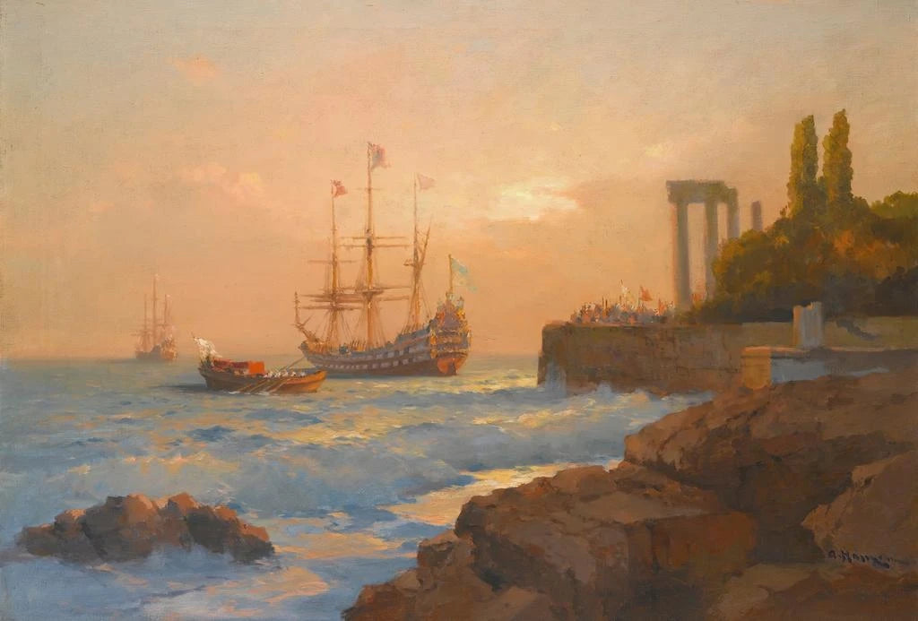 Nave trionfante che si avvicina al porto - Alexei Vasilievich Hanzen