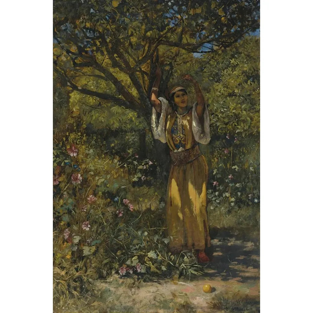 Nel giardino: una fuga verso l'esotismo L'opera "Nel giardino" di Edwin Lord Weeks ci trasporta in un mondo vibrante di colori e di luce. Questa tela, ricca di dettagli, raffigura un giardino rigoglioso dove si mescolano fiori sgargianti e ombre delicate. Le sfumature di verde, rosa e giallo si intrecciano per creare un'atmosfera allo stesso tempo pacifica e incantata. La tecnica di Weeks, che unisce il realismo a un tocco impressionista, permette di percepire il calore del sole e la dolcezza dell'aria. Ogni elemento della composizione sembra sussurrare storie di natura e serenità, invitando lo spettatore a immergersi in questo angolo di pace. Edwin Lord Weeks: un maestro dell'Orientalismo Edwin Lord Weeks, attivo alla fine del XIX secolo, è riconosciuto per le sue affascinanti rappresentazioni dell'Orientale. Influenzato dai suoi viaggi in India e in Marocco, è riuscito a catturare l'essenza di queste culture attraverso la sua arte. Il suo periodo di attività coincide con l'ascesa dell'Orientalismo, un movimento artistico che cercava di esplorare e celebrare paesaggi e stili di vita esotici. Weeks, come artista americano, ha svolto un ruolo chiave nell'introduzione di questi temi orientali al pubblico occidentale, rendendolo una figura importante della sua epoca. Le sue opere, tra cui "Nel giardino", testimoniano una sensibilità unica e un profondo rispetto per le culture che rappresentava. Un acquisto decorativo con molteplici vantaggi La stampa d'arte di "Nel giardino" è un pezzo decorativo ideale per aggiungere un tocco di esotismo al vostro interno. Che sia in un soggiorno, in uno studio o in una camera da letto, questa stampa invita alla contemplazione e alla rêverie. La qualità di riproduzione garantisce fedeltà ai colori e ai dettagli dell'opera originale, offrendo allo stesso tempo un indiscusso valore estetico. Scegliendo questa tela, optate per una decorazione che non solo abbellisce il vostro spazio, ma racconta anche una storia, quella di un giardino rigoglioso e di un artista appassionato delle meraviglie del mondo.