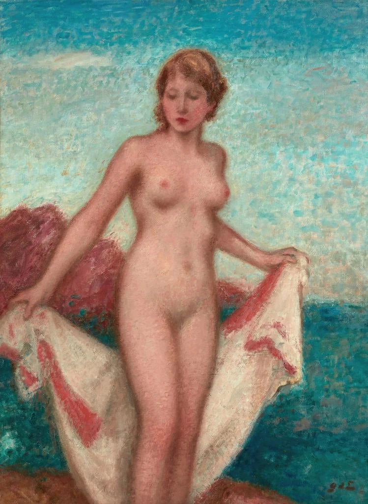 Georges d'Espagnat, né en 1870, est un peintre français qui a su se démarquer par son approche unique de l'impressionnisme. Évoluant dans un contexte artistique en pleine mutation, il a été influencé par les grands maîtres de son temps tout en développant son propre style. Sa période de création s'étend des années 1890 aux années 1940, et il a souvent exploré des thèmes liés à la nature et à la figure humaine. "Nu aux rochers rouges" illustre son intérêt pour la représentation du corps féminin, tout en intégrant des éléments de paysage qui renforcent l'harmonie entre l'homme et son environnement.