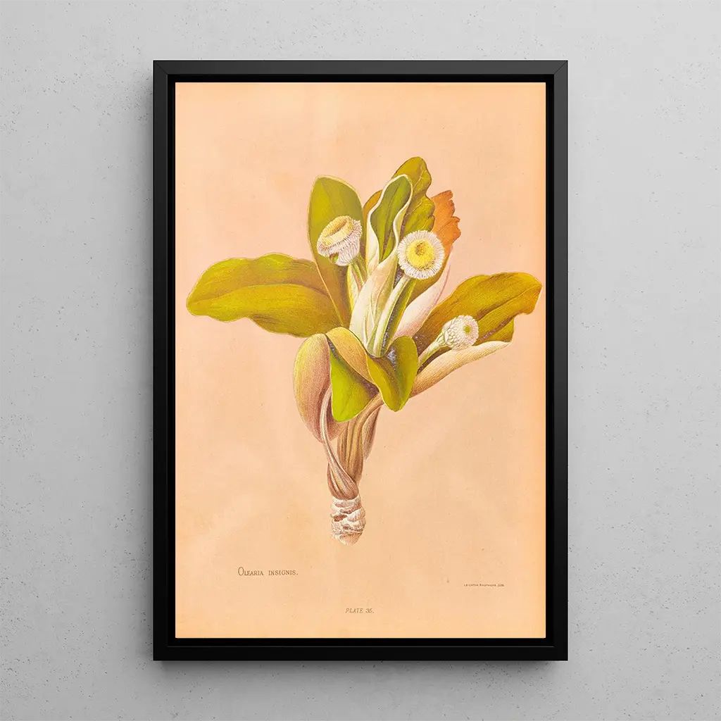 La riproduzione di "Oleria insignis" è un pezzo decorativo che saprà arricchire ogni spazio, che si tratti di un soggiorno, di un ufficio o di una camera da letto. La qualità di stampa garantisce una fedeltà notevole ai colori e ai dettagli dell'opera originale, permettendo di godere appieno del suo fascino estetico. Integrando questa tela nella vostra decorazione, portate un tocco di natura ed eleganza nel vostro interno. La sua capacità di armonizzarsi con vari stili di arredamento la rende una scelta ideale per chi desidera aggiungere un tocco di freschezza e poesia al proprio ambiente.