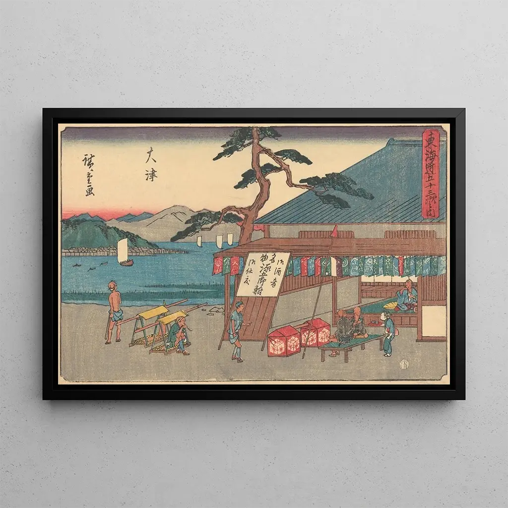 Andō Hiroshige, uno dei più grandi maestri della stampa ukiyo-e, ha segnato il XIX secolo con le sue rappresentazioni poetiche della natura e della vita urbana in Giappone. Influenzato dal movimento artistico dell'epoca, ha saputo unire tradizione e innovazione, creando opere che catturano l'essenza effimera delle stagioni e dei momenti della vita quotidiana. Hiroshige ha viaggiato attraverso il paese, ispirandosi ai paesaggi incontrati, e "Ōtsu" è un esempio perfetto del suo talento nel immortalare la bellezza del Giappone tradizionale. Le sue opere continuano a ispirare artisti e appassionati d'arte in tutto il mondo.