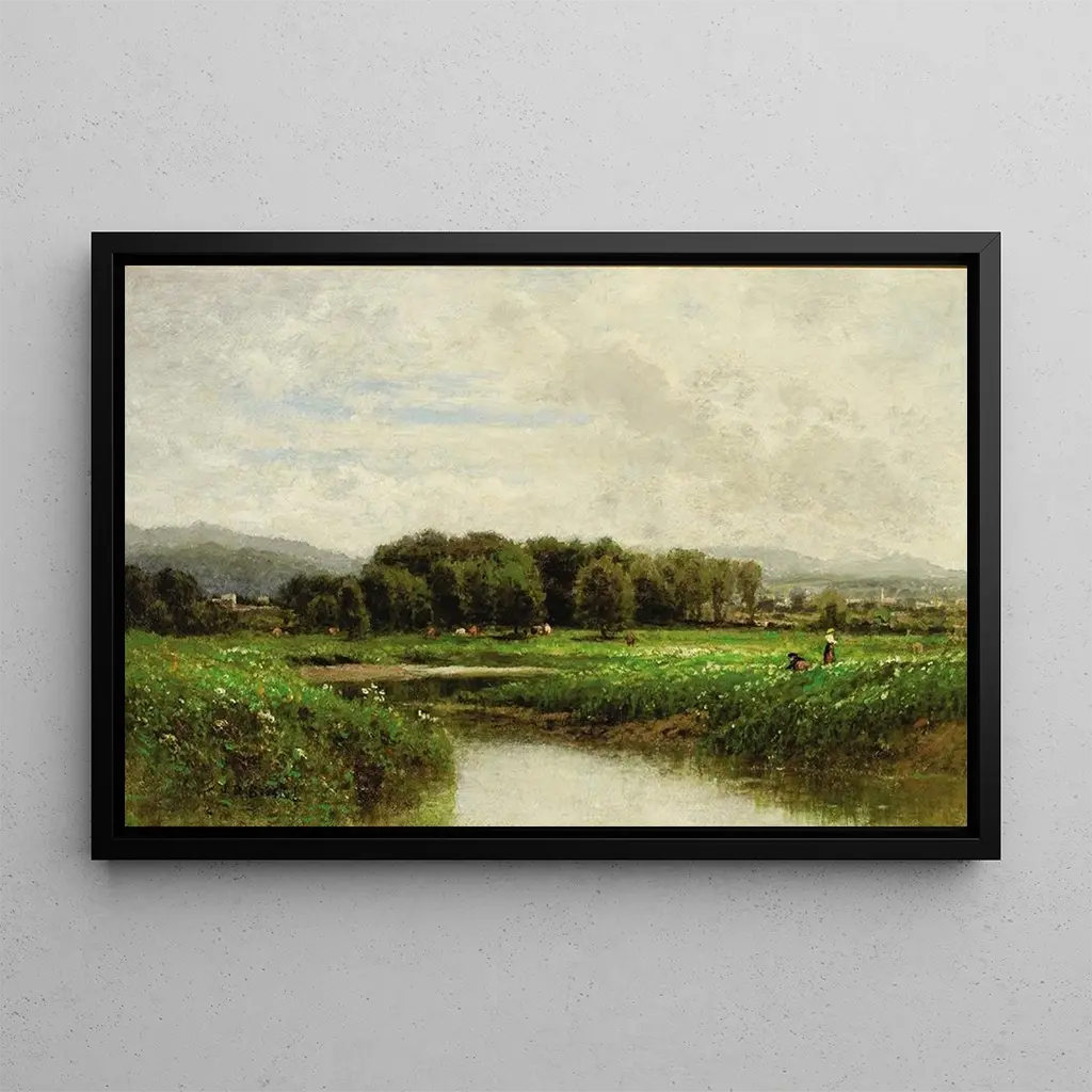 La stampa d'arte di Paesaggio pastorale immerge lo spettatore in un quadro vivace di serenità e bellezza naturale. Le tonalità verdognole e le sfumature morbide del cielo creano un'atmosfera pacifica, dove il tempo sembra sospeso. La composizione, equilibrata e armoniosa, invita a un'escursione verso terre lontane, dove la natura regna sovrana. I dettagli minuziosi degli alberi e delle colline, associati alla luce delicata, evocano una sensazione di calma e pienezza. Questo quadro, vero omaggio alla natura, è un invito alla contemplazione e alla rêverie.