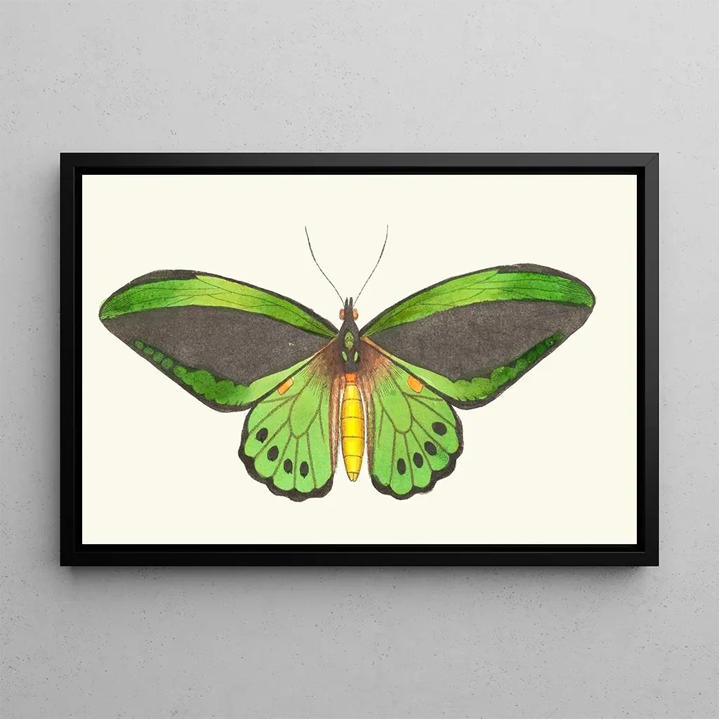 Papilio priamus : un ballet di colori e leggerezza La stampa d'arte di Papilio priamus, opera emblematica di George Shaw, ci immerge in un universo vibrante dove la natura fiorisce. Questo quadro, che rappresenta una farfalla maestosa, si distingue per le sue tonalità vivaci di verde, blu e nero, creando un contrasto sorprendente. La tecnica dell'acquarello, utilizzata con raffinatezza, conferisce all'opera un'atmosfera eterea e delicata. I dettagli minuti delle ali della farfalla, quasi traslucidi, sembrano catturare la luce, invitando lo spettatore ad ammirare la bellezza effimera di questa creatura. Questa stampa d'arte diventa così un vero omaggio alla natura e alla fragilità della vita. George Shaw : un pioniere dell’illustrazione naturalistica George Shaw, naturalista e illustratore britannico del XVIII secolo, ha svolto un ruolo cruciale nell’illustrazione scientifica della fauna e della flora. Operando in un’epoca in cui l’esplorazione scientifica era in pieno sviluppo, Shaw ha saputo catturare la diversità del mondo naturale attraverso le sue opere. Influenzato dalle scoperte del suo tempo, ha contribuito alla conoscenza delle specie esotiche, in particolare attraverso le sue illustrazioni di farfalle. Il suo lavoro ha non solo arricchito le conoscenze scientifiche, ma ha anche ispirato molti artisti. La stampa d'arte di Papilio priamus testimonia il suo talento e il suo impegno verso la bellezza della natura. Una proposta decorativa con molteplici vantaggi Optare per la stampa d'arte di Papilio priamus significa scegliere un pezzo decorativo che saprà valorizzare il vostro interno. Che sia in un soggiorno, in uno studio o in una camera da letto, questo quadro apporterà un tocco di eleganza e freschezza. La qualità di stampa garantisce fedeltà ai colori e ai dettagli dell’opera originale, offrendo un’attrattiva estetica indiscutibile. Integrando questa tela nella vostra decorazione, create uno spazio in cui natura e arte si incontrano, invitando alla contemplazione e all’evasione. Questa stampa d'arte non è solo una scelta artistica, ma anche un modo per portare un’atmosfera serena e ispiratrice nel vostro ambiente.