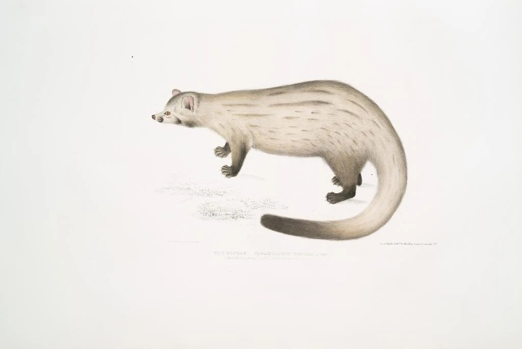John Edward Gray, naturalista e zoologo britannico del XIX secolo, ha segnato la sua epoca con i suoi contributi alla classificazione delle specie. Influenzato dalle esplorazioni del suo tempo, ha saputo catturare la diversità animale con una precisione scientifica e un senso artistico indiscutibile. Gray ha collaborato con numerosi esploratori e scienziati, il che gli ha permesso di accedere a esemplari rari e di arricchire le sue conoscenze. Il suo lavoro è stato fondamentale per la comprensione della fauna, e le sue illustrazioni, come quella del Paradoxure Bondar, testimoniano il suo talento eccezionale e il suo impegno verso la scienza.