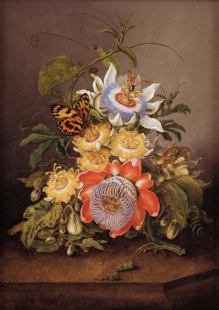 Ferdinand Bauer, botanico e artista del XVIII secolo, è famoso per le sue illustrazioni botaniche di precisione senza pari. Lavorando principalmente per istituzioni scientifiche, ha saputo unire il suo amore per la natura a un senso artistico acuto. La sua opera "Passiflores" testimonia della sua competenza e passione per le piante, riflettendo allo stesso tempo l'estetica del suo tempo. Pioniere nel campo dell'illustrazione scientifica, Bauer ha influenzato molti artisti e scienziati, facendo delle sue opere dei riferimenti imprescindibili nel mondo della botanica.