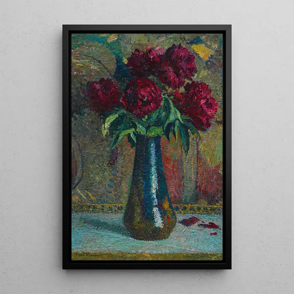 In "Pivoines rosse in un vaso Dalpayrat", Henri Martin ci immerge in un universo floreale vibrante. I petali delle peonie, di un rosso acceso, sembrano quasi pulsare sotto la luce, mentre il vaso, di una raffinatezza delicata, aggiunge un tocco di eleganza alla composizione. La tecnica impressionista di Martin si manifesta attraverso pennellate audaci, creando un'atmosfera allo stesso tempo dinamica e serena. Le sfumature di verde e di blu che circondano i fiori conferiscono profondità all'opera, invitando lo spettatore ad ammirare ogni dettaglio con meraviglia.