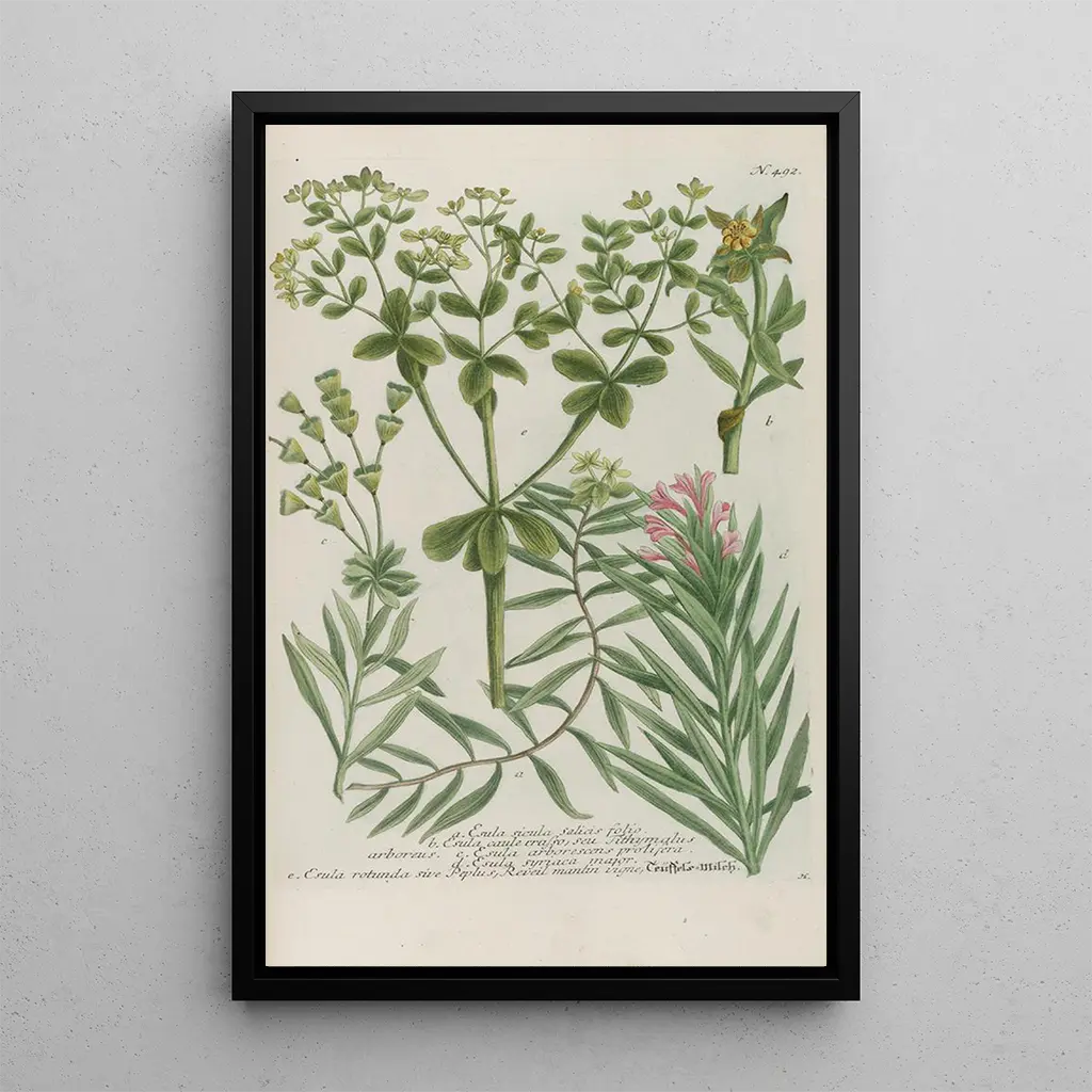 La stampa d'arte dell'opera Phytanthoza iconographia Pl215 ci trasporta in un mondo in cui la flora è messa in luce con una precisione straordinaria. Le illustrazioni, di una chiarezza sorprendente, presentano una varietà di piante dalle forme e dai colori diversi, creando un'atmosfera vivace e dinamica. La tecnica di incisione, arricchita da tocchi di acquerello, conferisce a ogni pianta una dimensione quasi tattile, invitando all'esplorazione. L'opera evoca non solo la bellezza della natura, ma anche l'importanza della documentazione botanica in un'epoca in cui scienza e arte si univano.
