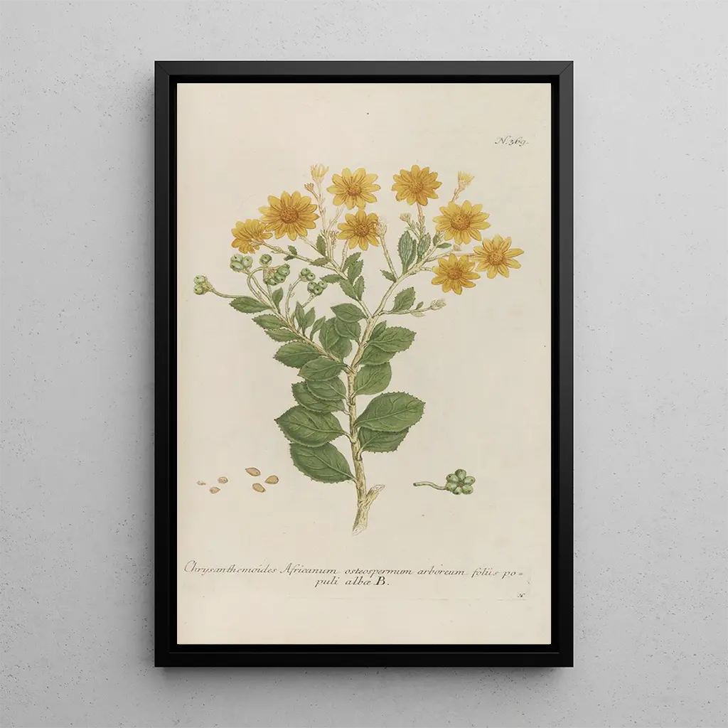 Phytanthoza iconographia Pl092 : una celebrazione della biodiversità La stampa d'arte di Phytanthoza iconographia Pl092 è un'opera affascinante che immerge lo spettatore in un mondo di colori vibranti e dettagli minuziosi. Ogni pianta è rappresentata con una precisione notevole, mettendo in evidenza la bellezza e la diversità della flora. Le tonalità vivaci, che vanno dai verdi profondi ai gialli luminosi, creano un'atmosfera vivace e gioiosa. La tecnica di incisione utilizzata da Johann Wilhelm Weinmann permette di catturare la delicatezza dei petali e la robustezza degli steli, offrendo così un vero invito all'esplorazione botanica. Johann Wilhelm Weinmann : un pioniere dell'illustrazione botanica Johann Wilhelm Weinmann, botanico e artista del XVIII secolo, è riconosciuto per il suo contributo significativo alla stampa d'arte botanica. Attivo durante un periodo in cui l'interesse per la scienza e la natura era in pieno sviluppo, ha saputo unire rigore scientifico e senso artistico. Le sue opere, tra cui Phytanthoza iconographia, sono il frutto di una passione per la botanica e di una volontà di documentare la diversità delle specie vegetali. Influenzato dalle scoperte del suo tempo, Weinmann ha contribuito a rendere popolari le conoscenze botaniche attraverso illustrazioni precise ed estetiche, segnando così la storia dell'arte e della scienza. Una riproduzione decorativa con molteplici vantaggi La stampa d'arte di Phytanthoza iconographia Pl092 è una scelta ideale per arricchire la vostra decorazione d'interni. Che sia in un soggiorno, in uno studio o in una camera da letto, questa opera porta un tocco di natura e serenità. La qualità di stampa garantisce fedeltà ai colori e ai dettagli dell'opera originale, offrendo al contempo un'attrattiva estetica indiscutibile. Integrando questa tela nel vostro spazio, create un'atmosfera calda e accogliente, celebrando la bellezza della biodiversità. Questa opera non è solo un elemento decorativo, ma anche una fonte di ispirazione e contemplazione.