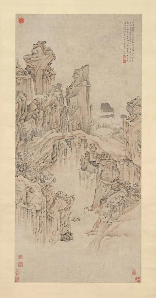 Lu Zhi, attivo durante la dinastia Ming, è riconosciuto per il suo talento eccezionale nella rappresentazione dei paesaggi. Influenzato dalle filosofie taoiste e confuciane, la sua opera si caratterizza per una ricerca di armonia tra l'uomo e la natura. Le sue creazioni, spesso intrise di spiritualità, testimoniano un'epoca in cui l'arte serviva a esprimere valori culturali profondi. Lu Zhi è riuscito a imporsi come un artista di rilievo del suo tempo, e il suo stile ha influenzato molti artisti successivi, consolidando così il suo patrimonio nella storia dell'arte cinese.