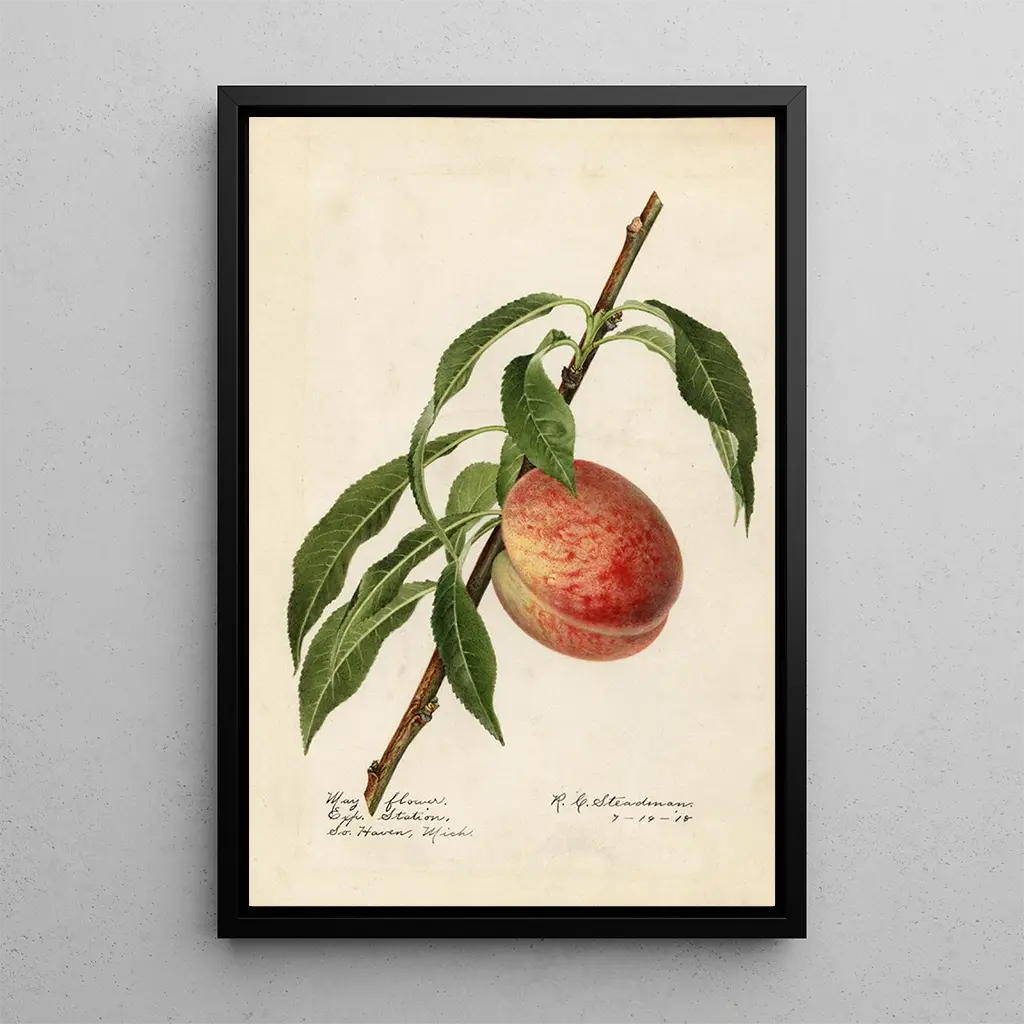 Prunus persica Mayflower : una celebrazione della fioritura La stampa d'arte Prunus persica Mayflower evoca la magia dei pesche in fiore, dove le tonalità pastello si intrecciano per creare un quadro incantato. Le delicate sfumature di rosa e bianco si dispiegano con grazia, catturando la luce di una giornata primaverile. La tecnica impiegata, allo stesso tempo precisa ed espressiva, permette di percepire la dolcezza dei petali e la freschezza dei boccioli. Quest'opera invita a una contemplazione serena, ricordando la bellezza effimera della natura in piena fioritura. Royal Charles Steadman : un virtuoso dell’arte floreale Royal Charles Steadman, un artista botanico all'inizio del XX secolo, ha segnato la sua epoca con il suo approccio realistico e dettagliato ai fiori. La sua opera, influenzata dal naturalismo, si concentra sulla rappresentazione fedele delle piante, mettendo in risalto la loro bellezza intrinseca. Steadman ha saputo unire arte e scienza, offrendo illustrazioni che sono sia estetiche che informative. Il suo lavoro ha contribuito ad arricchire la conoscenza della botanica, seducendo gli appassionati d’arte con la sua eleganza. Una riproduzione decorativa con molteplici vantaggi La stampa d'arte del quadro Prunus persica Mayflower è un'aggiunta perfetta a qualsiasi arredamento interno. Che si trovi in un soggiorno, in un ufficio o in una camera da letto, questa tela porta un tocco di leggerezza e freschezza. La qualità di stampa garantisce una fedeltà notevole ai colori e ai dettagli dell'opera originale, rendendo omaggio alla bellezza della natura. Integrando quest'opera nel vostro spazio, create un'atmosfera rilassante e ispiratrice, ideale per rigenerarsi quotidianamente.