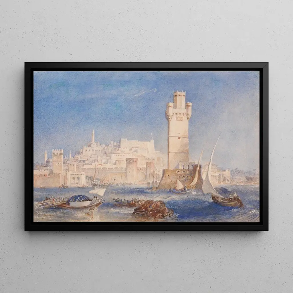 Rhodes : una visione romantica dei paesaggi mediterranei La stampa d'arte di Rhodes, opera emblematica di Joseph Mallord William Turner, ci trasporta verso coste assolate e cieli radiosi. Le sfumature di blu e oro si mescolano armoniosamente, creando un'atmosfera da sogno e di serenità. Turner, maestro della luce, utilizza pennellate fluide per catturare il movimento delle onde e la dolcezza dell'aria. Questa tela trasmette una sensazione di calma ed evasione, invitando lo spettatore a immergersi in un mondo in cui natura e arte si intrecciano. Joseph Mallord William Turner : pioniere del paesaggio romantico Joseph Mallord William Turner, figura di rilievo del romanticismo britannico, ha rivoluzionato la pittura di paesaggio nel XIX secolo. Nato nel 1775, è stato influenzato dai grandi maestri della luce e del colore, come Claude Monet e John Constable. Turner è riuscito a catturare l'essenza dei paesaggi attraverso giochi di luce e atmosfere mutevoli. Il suo stile audace e la tecnica innovativa hanno aperto la strada all'impressionismo. Il periodo di Turner è caratterizzato da una ricerca di emozione e della sublime bellezza della natura, rendendolo un artista imprescindibile della sua epoca. Una acquisizione decorativa con molteplici vantaggi Optare per una stampa d'arte di Rhodes è un ottimo modo per aggiungere un tocco di eleganza al vostro interno. Che sia in un soggiorno, in uno studio o in una camera da letto, questa tela si integra perfettamente con vari stili di decorazione, dal classico al contemporaneo. La qualità di stampa garantisce fedeltà ai colori e ai dettagli dell'opera originale, offrendo al contempo un indubbio fascino estetico. Scegliendo questa tela, non aggiungete solo un'opera d'arte al vostro spazio, ma anche un invito alla rêverie e alla contemplazione.