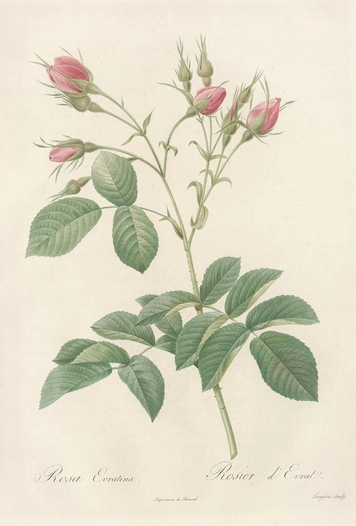 La stampa d'arte di Rosa Evratina, opera emblematica di Pierre Joseph Redouté, evoca una delicatezza e una bellezza senza pari. Questa tela, ricca di dettagli, presenta petali con sfumature delicate di rosa e bianco, illuminati da un gioco di luci sottile. La tecnica dell’acquarello, padroneggiata da Redouté, conferisce a quest'opera un’atmosfera dolce e rasserenante. Le foglie, di un verde tenero, contrastano armoniosamente con i fiori, creando una composizione equilibrata che invita alla contemplazione. Ogni elemento sembra catturare un momento fugace della natura, offrendo un’esperienza visiva intrisa di serenità.