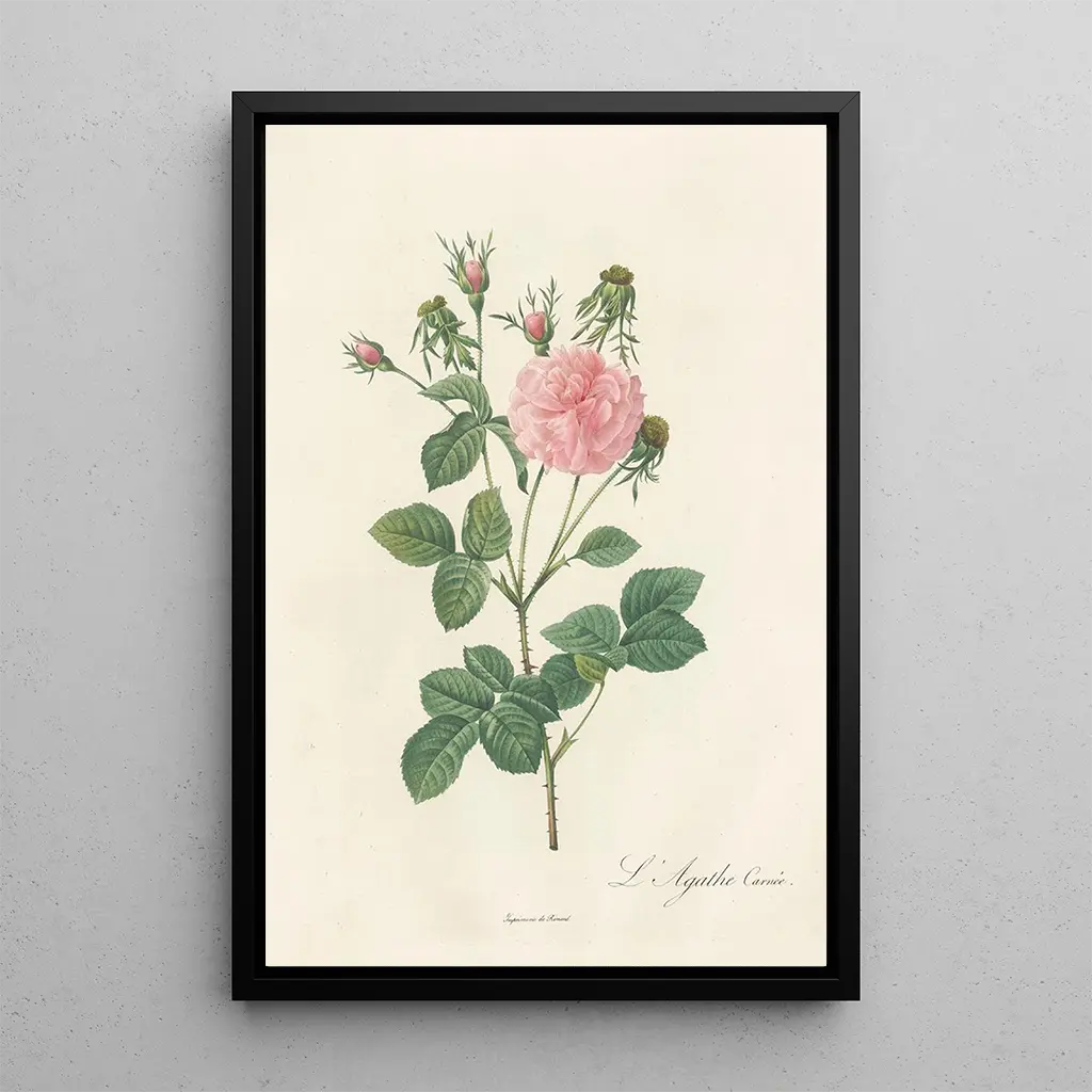 Quadro Rosa Gallica Agatha Incarnata - Pierre Joseph Redouté | Stampa d'arte
