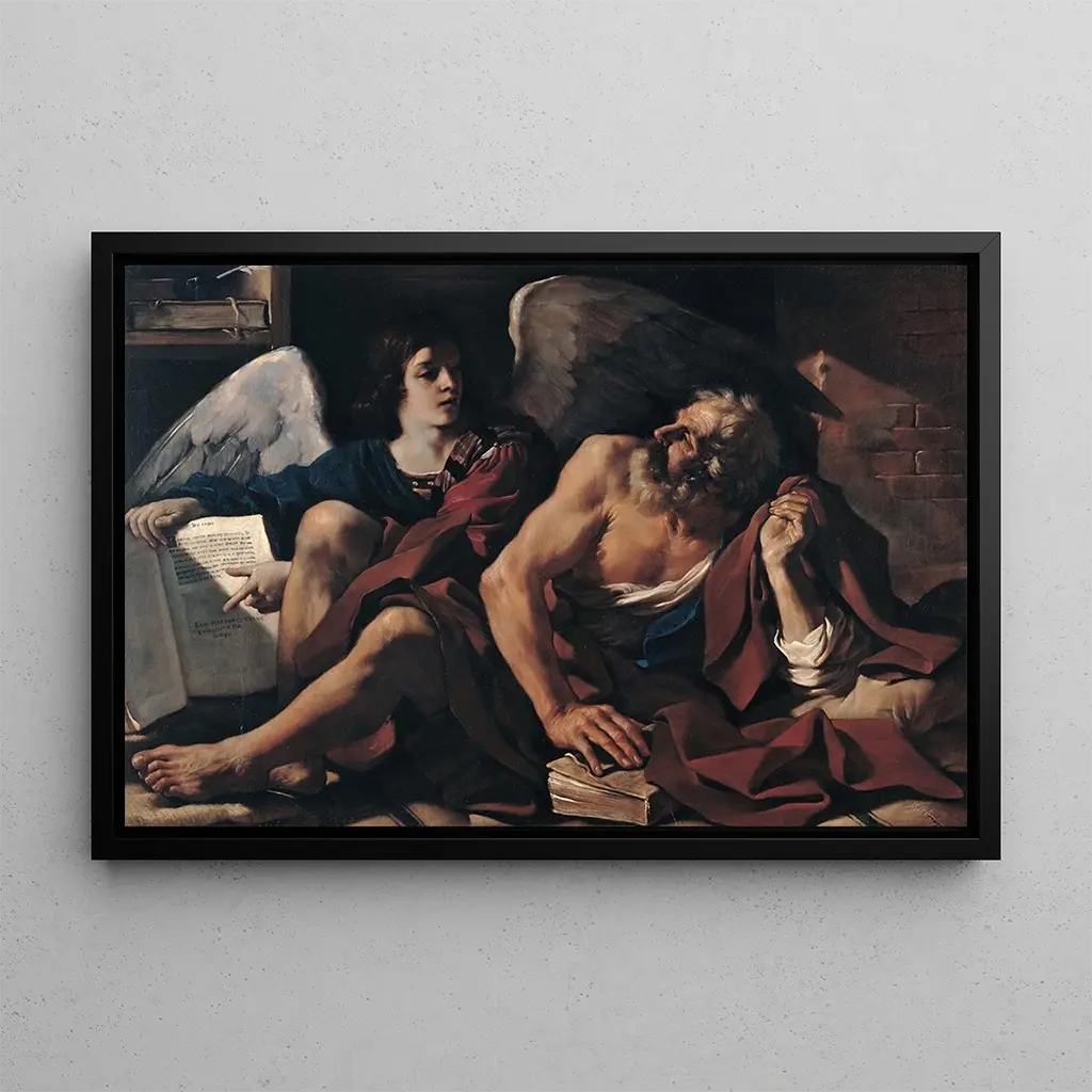 Saint Matthieu et l'ange : un incontro divino tra cielo e terra In questa opera emblematico, Guercino cattura un momento di intensa spiritualità in cui San Matteo, il santo evangelista, è guidato da un angelo. La composizione è caratterizzata da contrasti sorprendenti tra ombre profonde e luci brillanti, tipici del chiaroscuro. I colori caldi, che vanno dai marroni terrosi ai dorati luminosi, creano un'atmosfera allo stesso tempo intima e sacra. La tecnica della pittura ad olio permette di dare vita alle espressioni dei personaggi, rendendo palpabile l'emozione di questo incontro mistico. Ogni dettaglio, dal drappeggio dei vestiti alle piume dell'angelo, testimonia una cura minuziosa che invita alla contemplazione. Guercino : un maestro del barocco italiano Guercino, il suo vero nome Giovanni Francesco Barbieri, è un pittore italiano del XVII secolo, riconosciuto per il suo stile barocco che unisce realismo ed espressività. Influenzato da Caravaggio, sviluppa una tecnica di chiaroscuro che accentua le emozioni dei suoi soggetti. Attivo a Bologna, si distingue per la sua capacità di creare opere sia drammatiche che poetiche. La sua carriera è segnata da commesse prestigiose, e lascia un'eredità duratura nel mondo dell'arte. La riproduzione di "Saint Matthieu et l'ange" illustra perfettamente il suo talento e la sua importanza nell'evoluzione della pittura barocca. Una acquisizione decorativa con molteplici vantaggi Questa riproduzione di "Saint Matthieu et l'ange" è un pezzo forte che saprà arricchire il vostro interno, sia in un salotto, uno studio o una camera da letto. La qualità della riproduzione garantisce una fedeltà notevole all'opera originale, permettendo di apprezzare ogni sfumatura di colore e dettaglio minuzioso. L'attrattiva estetica di questa tela la rende una scelta ideale per chi desidera portare un tocco di eleganza e spiritualità nella propria decorazione. Integrando questo quadro nel vostro spazio, non vi limitate ad abbellire l'ambiente, ma invitate anche alla riflessione e alla contemplazione.