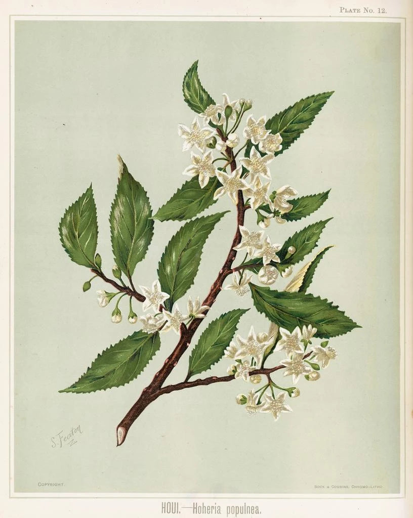 Sarah Featon ci presenta in questa opera il Hoheria populnea, una pianta simbolo della Nuova Zelanda. Con uno sguardo attento ai dettagli, cattura la bellezza di questo albero, i suoi fiori delicati e il suo fogliame rigoglioso. Featon, come artista botanico, utilizza tecniche ad acquerello che valorizzano la luminosità e la texture della pianta, portando una dimensione quasi poetica al suo lavoro. Il Hoheria populnea è non solo un simbolo della flora neozelandese, ma anche una fonte di ispirazione per gli interior designer moderni. Oggi, le illustrazioni di Featon sono apprezzate per la loro capacità di arricchire gli spazi abitativi, aggiungendo un tocco di natura e un'estetica raffinata. Lasciati conquistare da questa opera su Artem Legrand e scopri la bellezza della flora neozelandese.