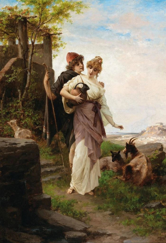 Quadro Una scena bucolica vicino alla fontana - Luigi Crosio | Stampa d'arte