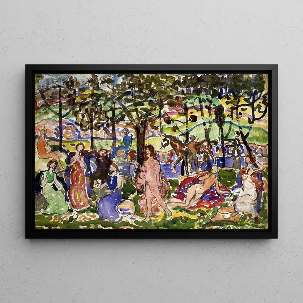 Maurice Prendergast, attivo alla fine del XIX secolo e all'inizio del XX secolo, è riconosciuto come uno dei maestri del post-impressionismo americano. Influenzato dai movimenti europei, in particolare dal Fauvismo, sviluppa uno stile unico, caratterizzato da colori vivaci e composizioni dinamiche. Prendergast ha spesso esplorato i temi della vita urbana e del tempo libero, catturando lo spirito della sua epoca. Le sue opere, come la stampa d'arte di Scène de parc, testimoniano una sensibilità alla bellezza dei momenti semplici, riflettendo al contempo i cambiamenti sociali e culturali del suo tempo. Il suo lascito perdura, ispirando molti artisti contemporanei.