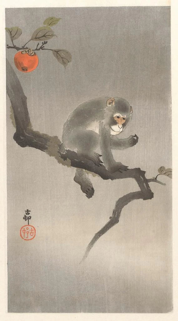 Stampa d'arte | Scimmia in un albero di cachi - Ohara Koson