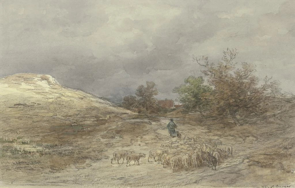 Sentiero scavato con gregge di pecore vicino a Kelsterbach - Anton Burger