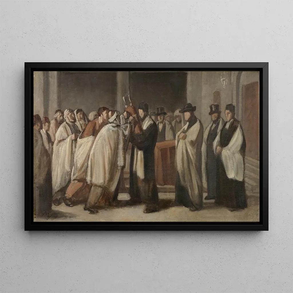 Servizio del sabato: una celebrazione della tradizione ebraica La stampa d'arte del Servizio del sabato di Édouard Moyse illustra con delicatezza una scena intima e spirituale. I colori ricchi e i dettagli minuziosi immergono lo spettatore nell'atmosfera sacra di questa celebrazione. I personaggi, vestiti con costumi tradizionali, sono rappresentati con grande espressività, riflettendo la profondità dei riti ebraici. La luce soffusa che emana dalla scena crea un'atmosfera calda, invitando alla riflessione sulla spiritualità e sulla comunità, elementi essenziali di questa pratica ancestrale. Édouard Moyse: un artista impegnato nella rappresentazione della vita ebraica Édouard Moyse, attivo nel XIX secolo, è un pittore francese di origine ebraica, noto per le sue opere che mettono in luce la vita e le tradizioni ebraiche. Influenzato dal romanticismo, cerca di catturare l'anima dei suoi soggetti attraverso composizioni ricche di emozioni. La sua carriera è segnata da un impegno a rappresentare la cultura ebraica in modo autentico, contribuendo così a una migliore comprensione e apprezzamento di questa comunità. Le sue opere, spesso intrise di nostalgia, testimoniano un'epoca in cui tradizione e modernità coesistevano. Un acquisto decorativo con molteplici vantaggi La stampa d'arte del Servizio del sabato è un'aggiunta preziosa a qualsiasi collezione d'arte, portando un tocco di cultura e storia nel vostro spazio. Che sia in un salotto, una sala da pranzo o un ufficio, questa opera evoca valori di condivisione e convivialità. La qualità di stampa garantisce una fedeltà eccezionale ai dettagli dell'opera originale, offrendo allo stesso tempo un'attrattiva visiva coinvolgente. Scegliendo questa tela, arricchisci la tua decorazione d'interni con un pezzo che racconta una storia e invita alla contemplazione.