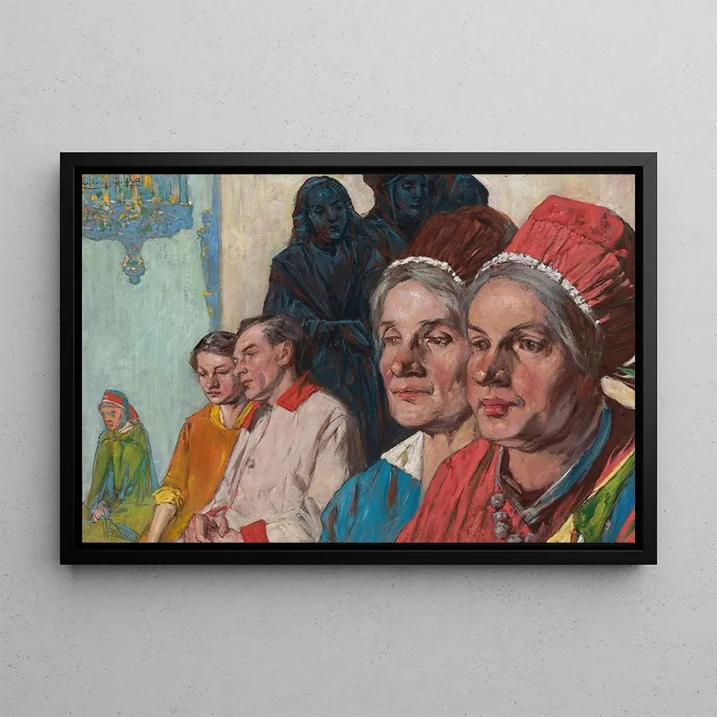 Il quadro "Service religieux à Levoča" di Ludwik Stasiak ci immerge in un'atmosfera di raccoglimento e spiritualità. I colori caldi, dominati da marroni e dorati, evocano la luce soffusa di una chiesa, mentre i dettagli minuziosi dei volti dei fedeli testimoniano una grande sensibilità artistica. La composizione, centrata sul sacerdote in piena cerimonia, cattura lo sguardo e invita alla contemplazione. Ogni elemento, dai mobili agli abiti dei personaggi, contribuisce a creare un'atmosfera immersiva, quasi palpabile, dove lo spettatore può percepire l'intensità della fede e della comunità.