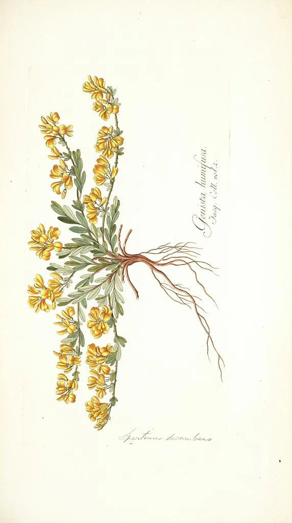 Nikolaus Joseph Freiherr von Jacquin, botanico e artista del XVIII secolo, ha segnato la sua epoca con i suoi contributi alla scienza e all'arte. Nato nel 1727 a Vienna, è stato influenzato dai movimenti dell'Illuminismo, che promuovevano l'osservazione e lo studio della natura. I suoi viaggi attraverso l'Europa e le Antille gli hanno permesso di scoprire una moltitudine di piante, che ha poi immortalato nelle sue opere. "Spartium decumbens" si inserisce in questa tradizione di esplorazione e documentazione, testimonianza dell'importanza della botanica nel suo tempo e dell'interconnessione tra arte e scienza.