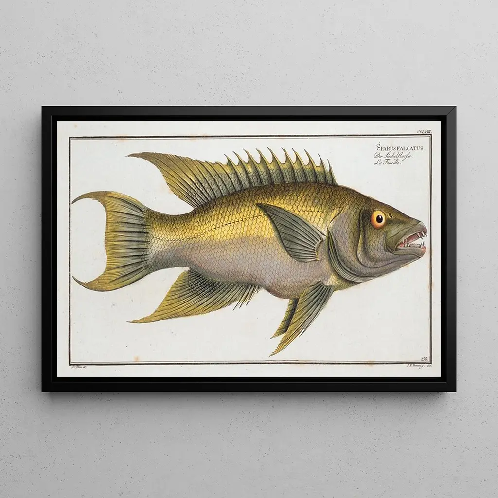 Marcus Elieser Bloch, naturalista e artista del XVIII secolo, ha svolto un ruolo determinante nell’illustrazione delle specie marine. La sua opera si inserisce in un’epoca in cui scienza e arte si incontrano, permettendo di comprendere meglio la biodiversità acquatica. Influenzato dalle scoperte del suo tempo, Bloch ha saputo unire precisione scientifica e sensibilità artistica. Le sue illustrazioni, tra cui Sparus falcatus, sono considerate riferimenti nel campo dell’ichthyologia, testimonianza dell’importanza dell’arte nella documentazione delle specie. La sua eredità perdura, ispirando ancora oggi appassionati di biologia marina e di arte.
