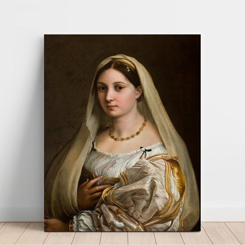 Donna Velata - Raphael, un'opera emblematica svolta tra il 1512 e il 1515, incarnò il picco del Rinascimento italiano. Raphael, il maestro indiscusso del ritratto, è stato in grado di creare un'atmosfera intima e accattivante attraverso questa rappresentazione di una misteriosa donna velata. Questo dipinto si distingue per il suo equilibrio armonioso e la sua profondità emotiva, testimoniando il genio artistico dell'artista. In un momento in cui i movimenti artistici hanno iniziato a diversificare, questo lavoro segna un ritorno alle fonti del realismo, in cui ogni pennello è attentamente pensato.