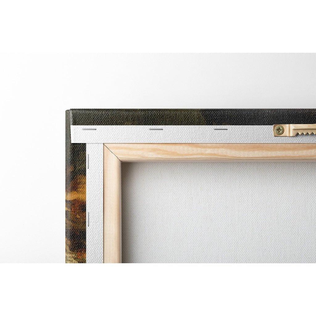 Tela, impression rendu mat, montée sur une structure en bois, prête à suspendre. Options d'encadrement disponibles sur certains formats.