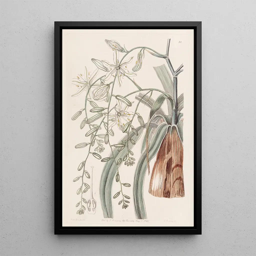 Étoile de Bethléem traînante : un symbole de lumière et d’espoir L’Étoile de Bethléem traînante, illustrée par Sydenham Edwards, évoque une beauté délicate et lumineuse. Avec ses pétales blancs éclatants et ses touches de vert, cette œuvre attire le regard et illumine l’espace. La technique de l’aquarelle permet de rendre la transparence des fleurs, créant une atmosphère douce et rêveuse. Chaque détail est soigneusement travaillé, révélant la grâce de cette plante emblématique, symbole de renouveau et d’espoir, qui invite à la contemplation et à la sérénité. Sydenham Edwards : un maître de l’illustration botanique Sydenham Edwards, figure marquante du début du XIXe siècle, a su allier art et science dans ses illustrations botaniques. Son travail a été influencé par le romantisme, mettant en avant la beauté naturelle tout en respectant la précision scientifique. Edwards a contribué à la documentation de nombreuses espèces végétales, jouant un rôle clé dans l’essor de la stampa d'arte botanique. Ses œuvres, souvent publiées dans des traités botaniques, ont permis de sensibiliser le public à la richesse de la flore, faisant de lui un artiste respecté et admiré. Une acquisition décorative aux multiples atouts La stampa d'arte de l’Étoile de Bethléem traînante est un ajout charmant à toute décoration intérieure, que ce soit dans un salon, un bureau ou une chambre. Sa qualité d’impression assure une fidélité aux couleurs et aux détails de l’œuvre originale, apportant une touche de fraîcheur et de luminosité à votre espace. Ce tableau, à la fois élégant et apaisant, invite à la rêverie et à la contemplation, faisant de votre intérieur un havre de paix et de beauté naturelle. En choisissant cette toile, vous enrichissez votre décoration tout en célébrant l’art botanique.