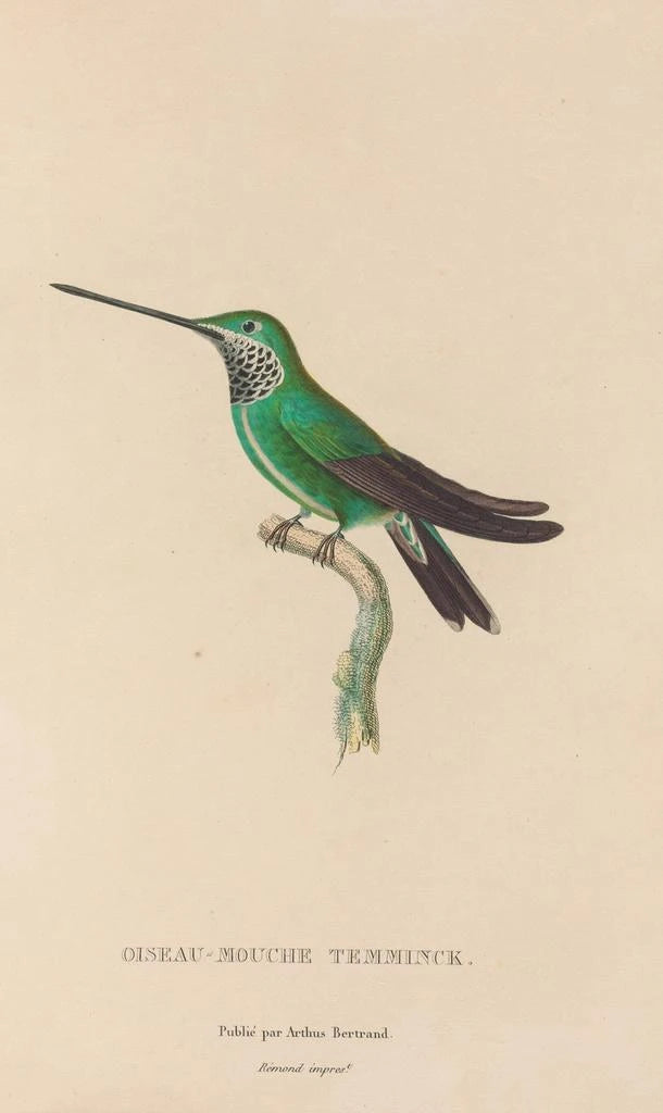 René Primevère Lesson, naturalista e illustratore francese, ha segnato il XIX secolo con i suoi contributi all'ornitologia. Il suo approccio artistico, che mescola osservazione scientifica e sensibilità estetica, ha permesso di far scoprire la ricchezza aviaria a un vasto pubblico. La sua opera "Histoire naturelle des oiseaux-mouches" è emblematica della sua epoca, in cui l'esplorazione e la documentazione delle specie erano fondamentali. Lesson è riuscito a catturare l'essenza stessa di questi uccelli, facendo delle sue illustrazioni dei riferimenti nel campo dell'ornitologia.