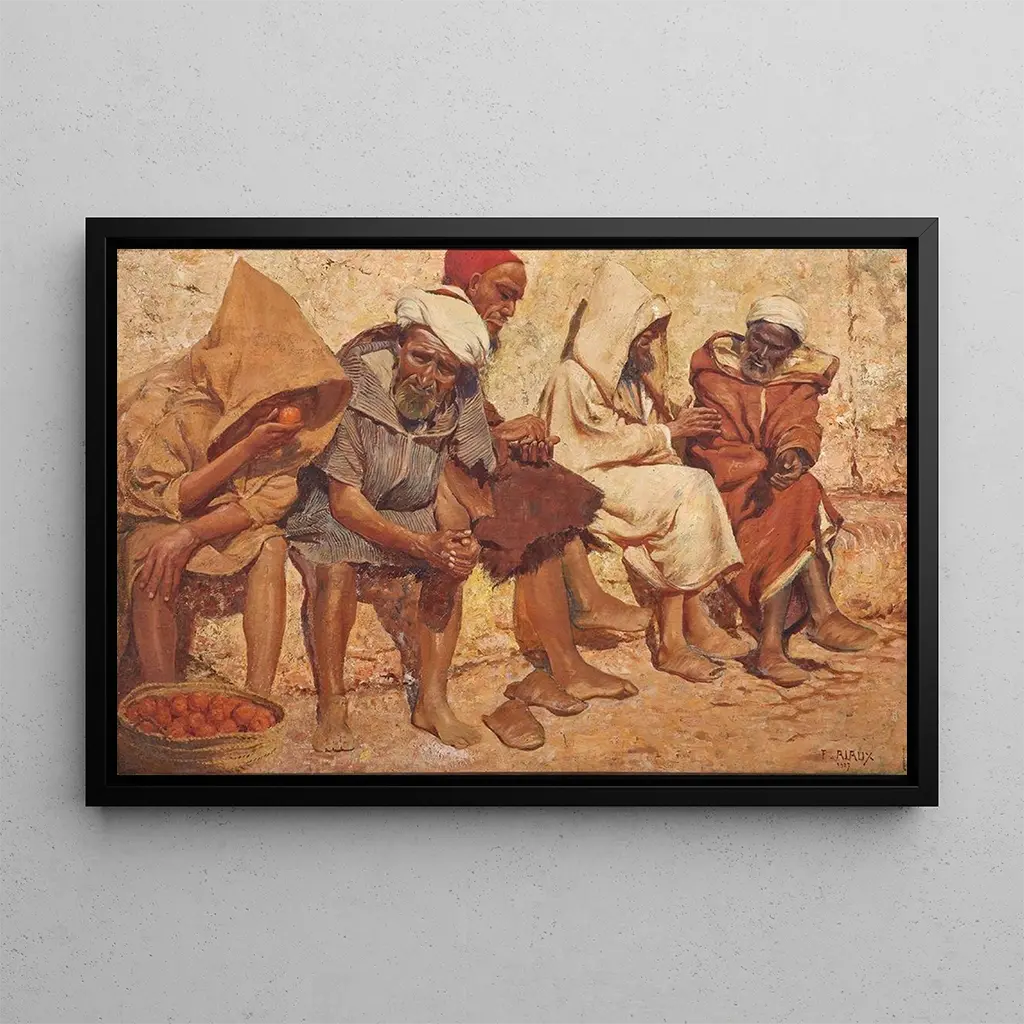 Sul banco, Tanger : un momento di pausa sotto il sole In Sul banco, Tanger, François Alaux cattura un istante di vita semplice e autentica. La tela rappresenta una scena soleggiata in cui alcuni personaggi si riposano, circondati dall'architettura tipica di Tanger. I colori caldi e luminosi evocano il calore del clima mediterraneo, mentre le ombre delicate aggiungono profondità alla composizione. Alaux riesce a trasmettere un'atmosfera di tranquillità e convivialità, invitando lo spettatore a immaginarsi in questo luogo idilliaco, a condividere un momento di calma e contemplazione. François Alaux: un artista al cuore della luce François Alaux, attivo all'inizio del XX secolo, è riconosciuto per le sue opere che celebrano la luce e il colore. Influenzato dal fauvismo, ha saputo sviluppare uno stile personale che mette in risalto i contrasti e le armonie cromatiche. Il suo soggiorno a Tanger ha profondamente segnato il suo lavoro, permettendogli di catturare l'essenza di questa città vibrante e colorata. Alaux ha saputo immortalare momenti di vita quotidiana, facendo delle sue tele delle finestre aperte su istanti di felicità condivisa, contribuendo anche all'arricchimento dell'arte francese della sua epoca. Un acquisto decorativo con molteplici vantaggi La stampa d'arte di Sul banco, Tanger è una scelta decorativa perfetta per aggiungere un tocco di esotismo e calore al vostro interno. Che sia in un soggiorno o in uno studio, questa tela attira lo sguardo e stimola conversazioni. La qualità di stampa garantisce fedeltà ai colori e ai dettagli dell'opera originale, rendendo questo pezzo un'aggiunta preziosa alla vostra collezione. Scegliendo questa opera, invitate un'atmosfera serena e soleggiata nel vostro spazio di vita, celebrando allo stesso tempo l'arte di François Alaux.