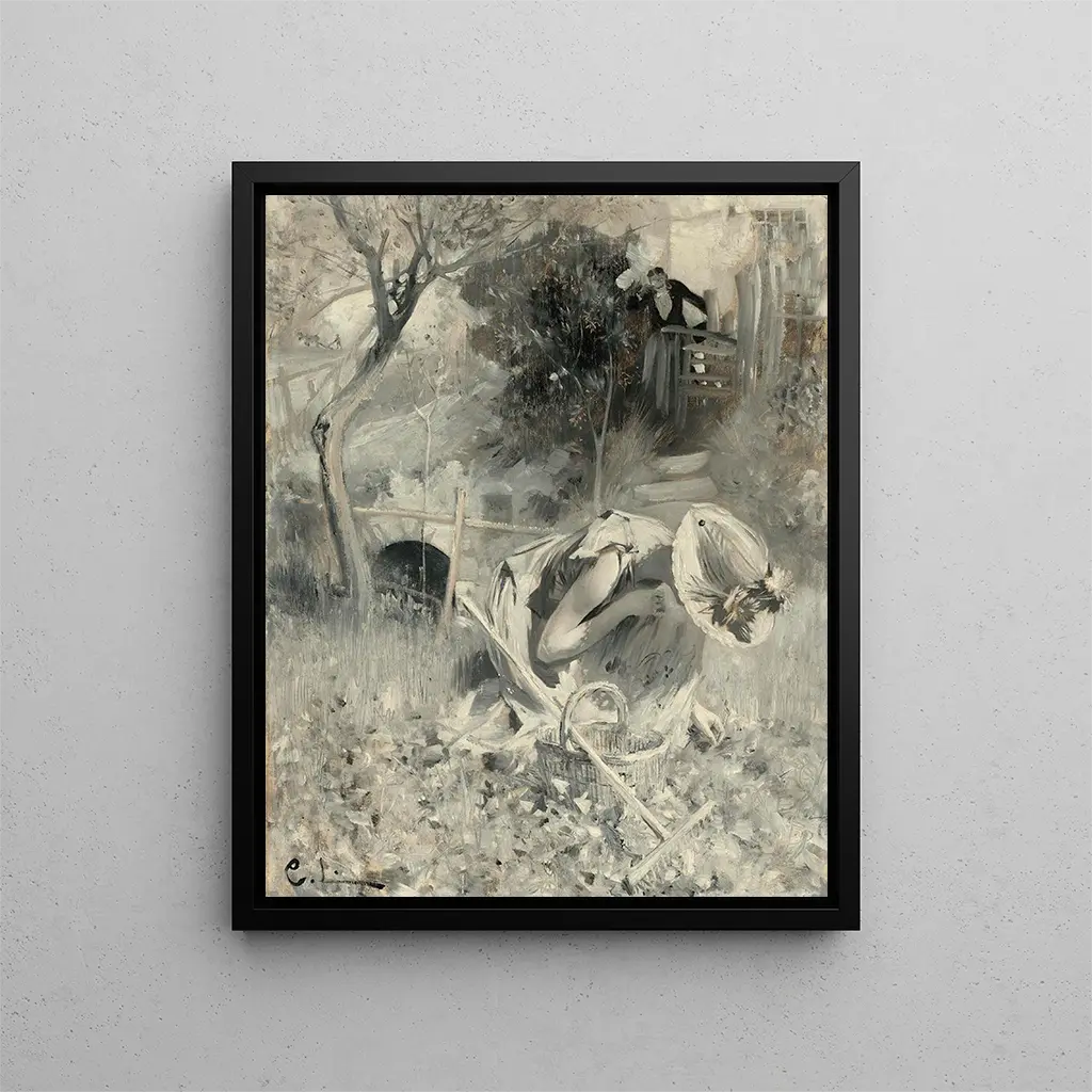 Nel mondo dell’arte, alcune opere trascendono la loro epoca e catturano l’essenza di uno stile di vita. "Trädgårdsidylle" di Carl Larsson è uno di questi capolavori emblematici, invitando lo spettatore a immergersi in un universo al tempo stesso intimo e bucolico. Quest’opera, realizzata all’inizio del XX secolo, raffigura una scena di giardino che evoca serenità e la bellezza della vita quotidiana. Attraverso i suoi colori delicati e la sua atmosfera pacifica, Larsson riesce a creare una vera e propria ode alla natura e all’arte di vivere, offrendo così una finestra su un’epoca in cui l’armonia tra l’uomo e il suo ambiente era al centro delle preoccupazioni.