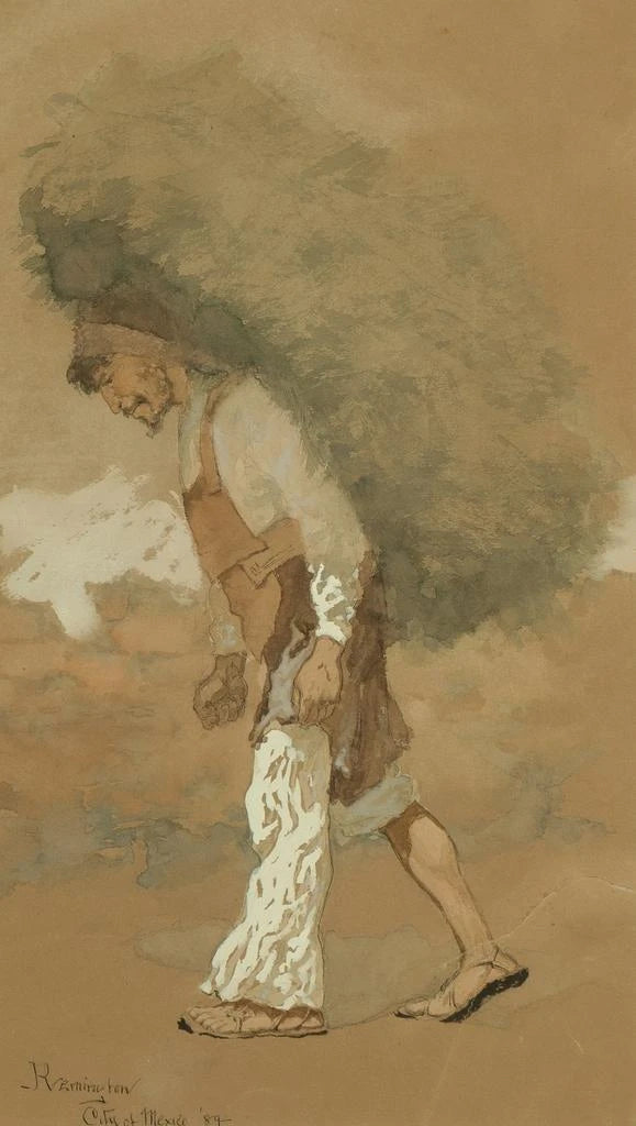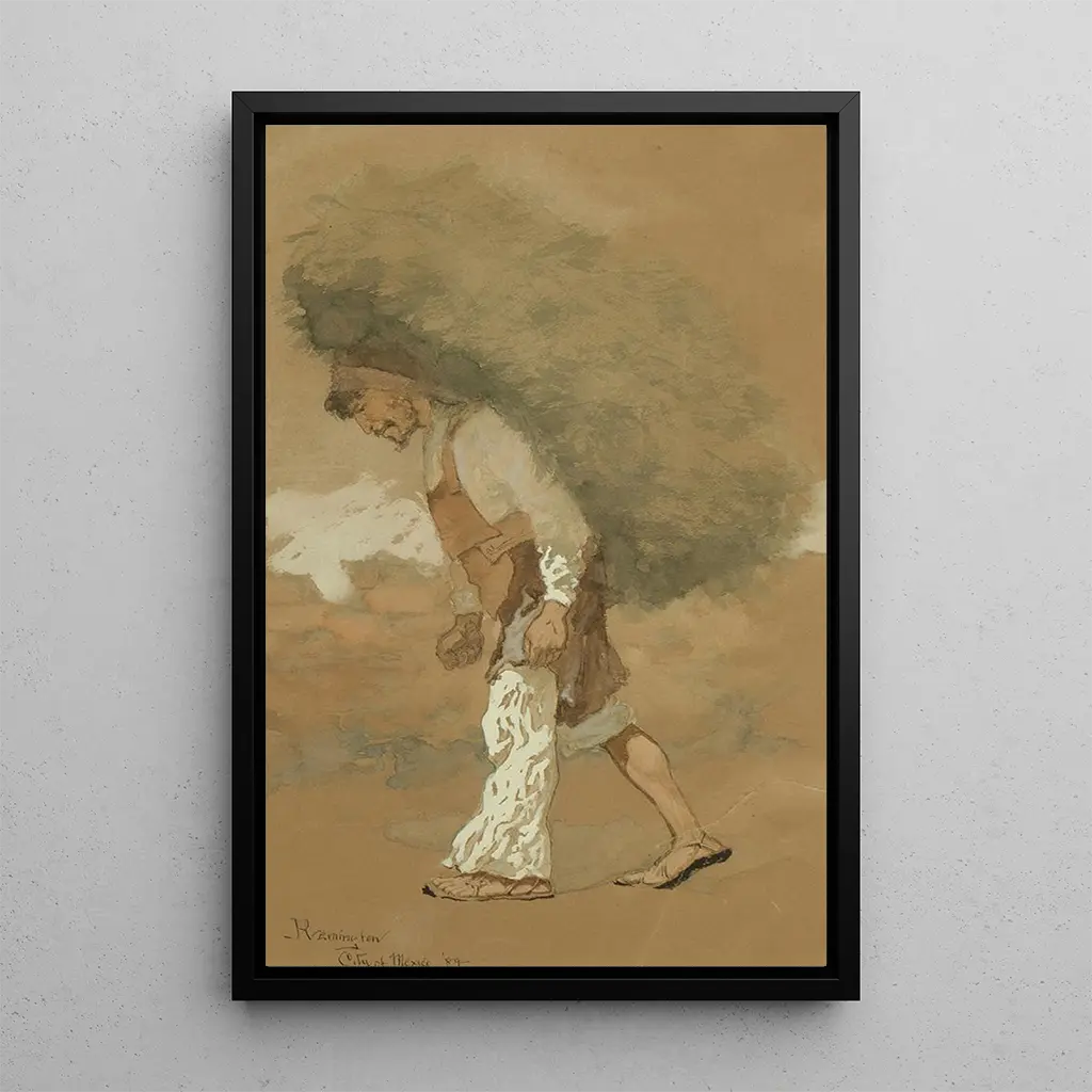 Frederic Remington, nato nel 1861, è uno degli artisti più emblematici del West americano. Influenzato dai racconti dei cowboy e dalle leggende della conquista del West, ha saputo tradurre la vita dei pionieri attraverso le sue opere. Remington si è evoluto in un'epoca in cui l'arte americana cercava di definirsi, e il suo stile, che unisce il realismo a una certa poesia, ha segnato il suo tempo. I suoi dipinti e sculture, spesso ispirati dai suoi viaggi nel West, testimoniano una profonda ammirazione per la cultura e i paesaggi americani. La stampa d'arte del Trasporto di fieno illustra perfettamente il suo talento e il suo impegno verso questa tematica.