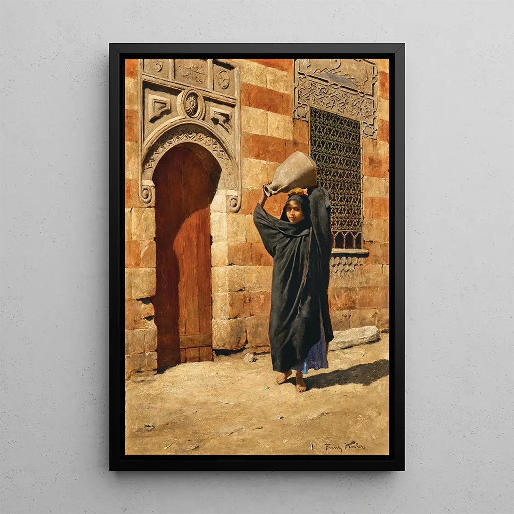Un giovane portatore d'acqua: un'istantanea della vita quotidiana In "Un giovane portatore d'acqua", l'artista Franz Xaver Kosler cattura la bellezza semplice di un giovane ragazzo che trasporta una brocca d'acqua. La composizione è caratterizzata da colori caldi e terrosi, evocando la calore del sole e la vitalità della giovinezza. La tecnica di pittura ad olio utilizzata da Kosler conferisce una texture ricca, rendendo quasi palpabile la dolcezza della pelle del giovane portatore e il peso del suo fardello. L'atmosfera che si percepisce da questa tela è allo stesso tempo serena e dinamica, invitando lo spettatore a riflettere sulla vita di questo giovane ragazzo, simbolo di innocenza e fatica. Franz Xaver Kosler: un testimone della vita rurale Franz Xaver Kosler, pittore austriaco del XIX secolo, è riconosciuto per le sue rappresentazioni della vita rurale e delle scene di genere. Influenzato dal movimento realista, cerca di dipingere momenti autentici della vita quotidiana, lontano dalle idealizzazioni romantiche. Kosler è riuscito a catturare l'essenza della sua epoca, in cui l'industrializzazione iniziava a trasformare i modi di vivere tradizionali. Le sue opere, come "Un giovane portatore d'acqua", testimoniano una sensibilità verso le classi lavoratrici e un profondo rispetto per il loro lavoro. Attraverso le sue tele, ci invita a riflettere sulle sfide e le gioie della vita semplice. Un'acquisizione decorativa con molteplici vantaggi La riproduzione di "Un giovane portatore d'acqua" è un pezzo decorativo che si integra armoniosamente in diversi spazi, che sia in un salotto, un ufficio o una camera da letto. La qualità di stampa e la fedeltà all'opera originale garantiscono un risultato estetico coinvolgente. Questo quadro porta un tocco di autenticità e calore nel vostro interno, stimolando conversazioni sull'arte e sulla vita quotidiana. Scegliendo questa tela, optate per una decorazione che unisce bellezza e sensibilità, arricchendo così il vostro spazio di vita di una dimensione artistica.