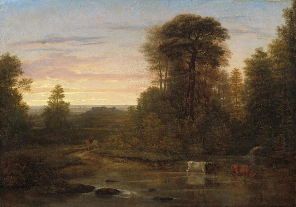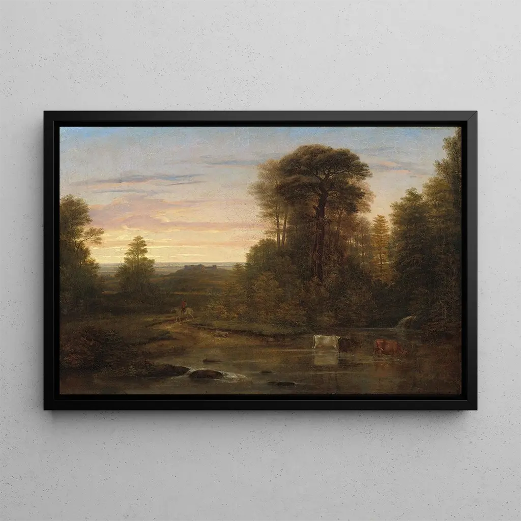 Washington Allston, pittore e poeta dell'inizio del XIX secolo, è spesso considerato uno dei precursori del romanticismo americano. Influenzato dai maestri europei, in particolare Turner e Constable, Allston ha saputo sviluppare uno stile unico che mescola realismo ed emozione. La sua carriera, segnata da viaggi in Europa, gli ha permesso di incorporare elementi della natura nelle sue opere, esplorando temi spirituali e poetici. "Un paesaggio dopo il tramonto" si inserisce in questa ricerca di una bellezza trascendente, riflettendo l'importanza della natura nell'arte americana nascente.