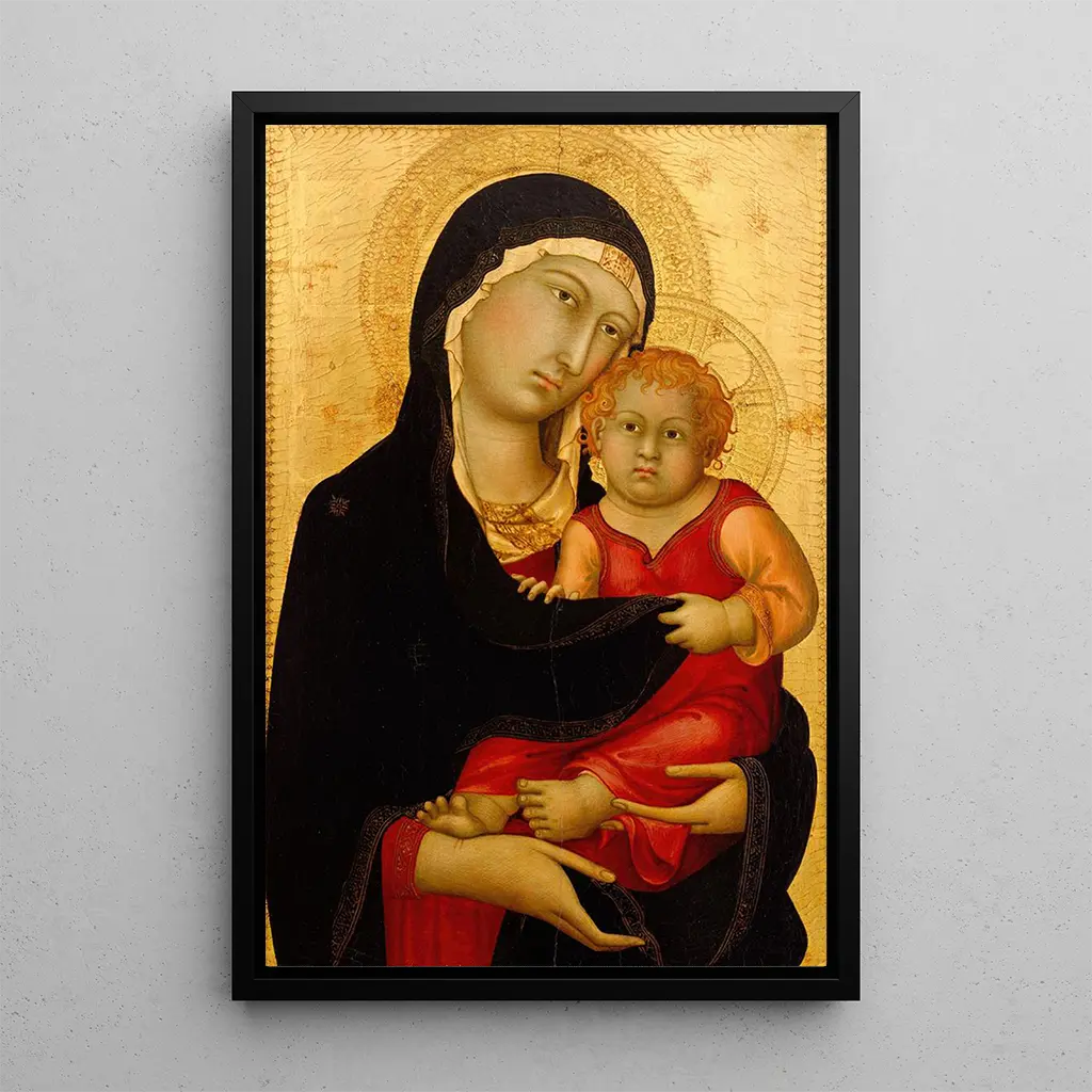 La Vierge à l'Enfant de Simone Martini est une œuvre qui respire la douceur et la sérénité. Dans cette représentation, la Vierge Marie est dépeinte avec une grâce infinie, tenant son enfant Jésus dans ses bras. Les couleurs chaudes et dorées créent une atmosphère lumineuse, tandis que les détails minutieux des vêtements et des visages témoignent d'un savoir-faire exceptionnel. La composition, centrée sur la relation entre mère et enfant, invite à la contemplation et à la méditation, faisant de cette toile un véritable chef-d'œuvre de l'art médiéval.