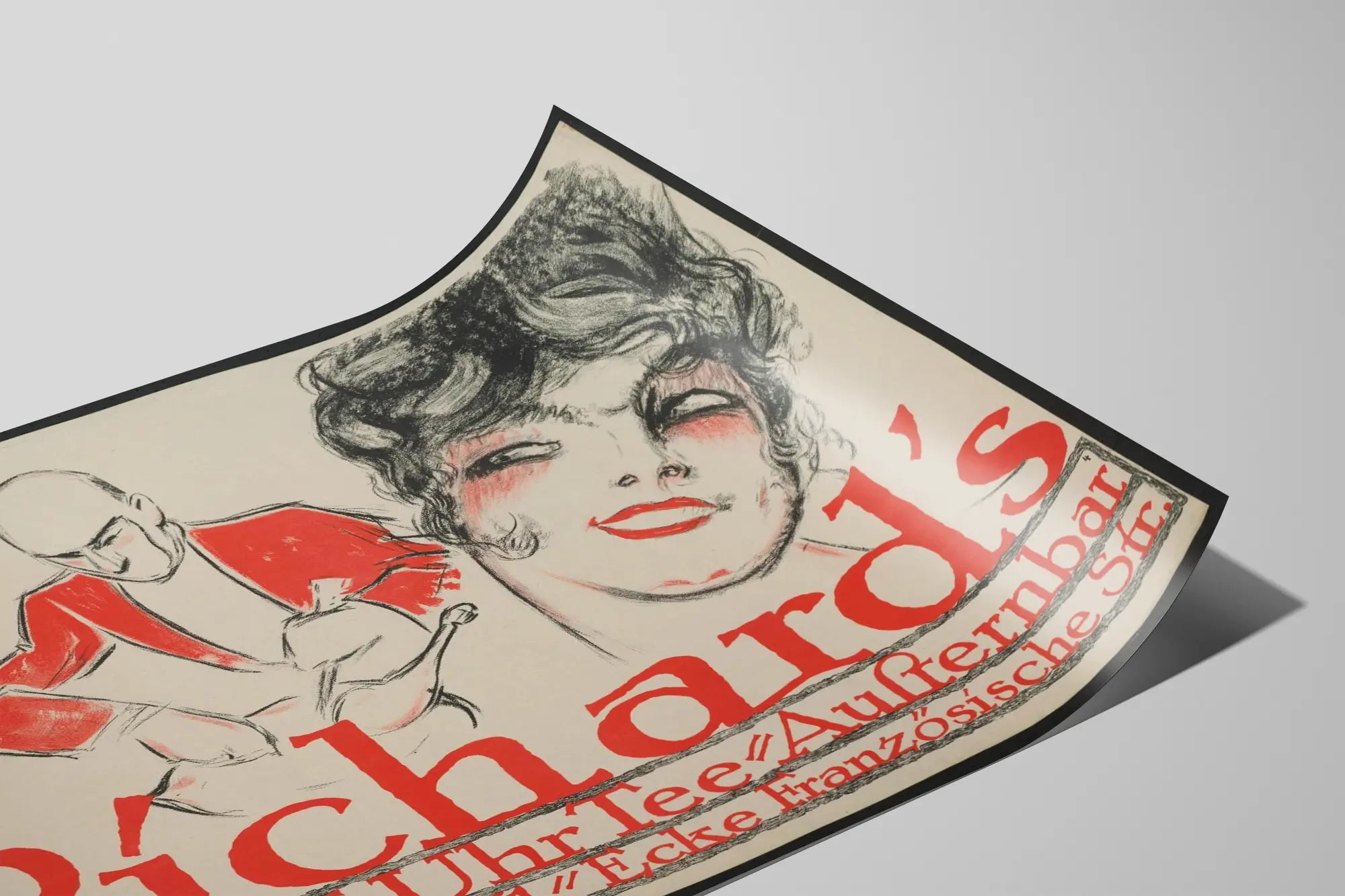 Entdecken Sie dieses vintage Poster im grafischen Stil, das ein ausdrucksstarkes Frauenporträt zeigt, verbunden mit zwei männlichen Figuren, die Musik spielen. Diese Komposition hebt einen auffälligen Kontrast zwischen mit Kohle oder Bleistift gezeichneten Zügen und lebhaften roten Akzenten hervor, die die Kleidung und bestimmte Gesichtsdetails betonen. Der künstlerische Stil erinnert an eine Retro-Ästhetik und ein Cabaret- oder Musikbühnen-Feeling, ideal für eine originelle und dynamische Wanddekoration. Dieses Poster richtet sich besonders an Liebhaber von Wanddekorationen, die eine Atmosphäre vergangener Zeiten ausstrahlen, in der Musik und Unterhaltung im Mittelpunkt stehen. Dank seines imposanten Formats und seines mutigen Designs fügt sich dieses Poster perfekt in ein modernes oder vintage-inspiriertes Interieur ein und verleiht ihm eine elegante und charaktervolle Note. Poster, Wandbild oder Gemälde – dieses Wanddekorationselement ist eine ausgezeichnete Wahl, um ein Wohnzimmer, einen Musikraum oder einen Empfangsbereich aufzuhellen. Verleihen Sie Ihren Wänden einen künstlerischen und zeitlosen Akzent mit dieser eleganten und ausdrucksstarken Darstellung der Musikszenen und stilisierten menschlichen Gesichter.