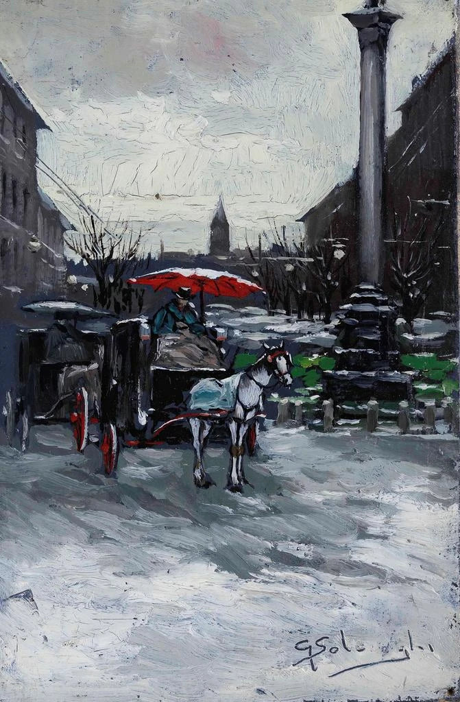 Quadro Vue urbaine avec carrosse - Giuseppe Solenghi | Stampa d'arte