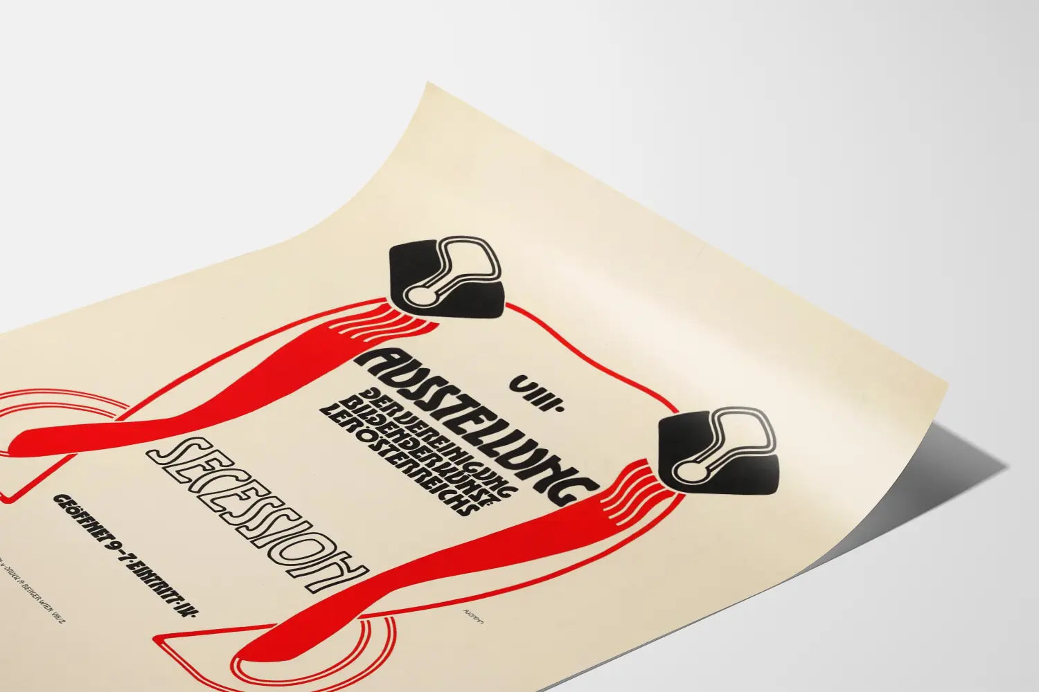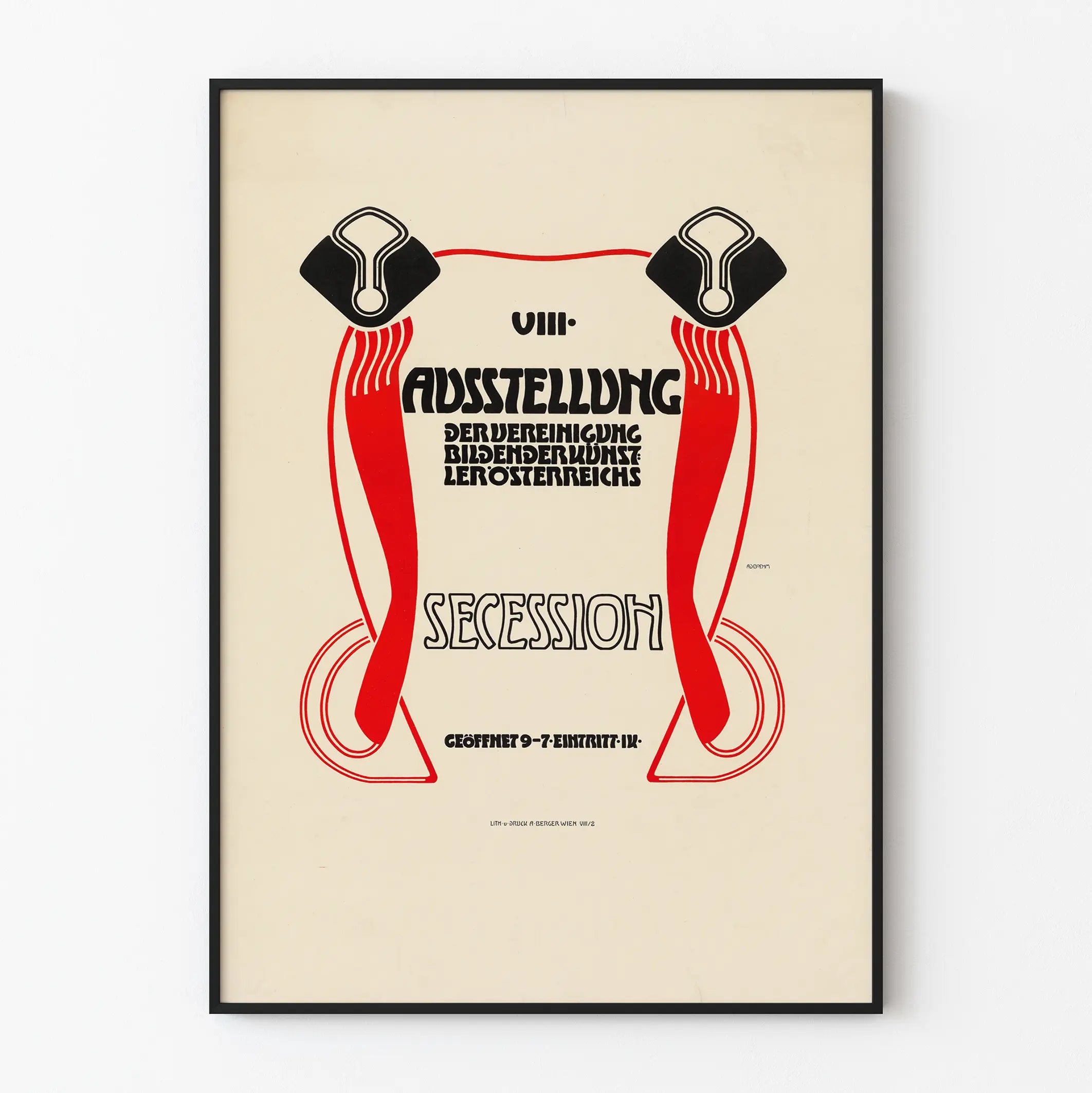 Entdecken Sie dieses Plakat im Jugendstil, das das offizielle Poster für die 8. Ausstellung der Wiener Secession darstellt, einer Vereinigung von Künstlern in Österreich. Dieses Poster besticht durch sein minimalistisches Design und die geschwungenen Linien, die typisch für die Secessionsbewegung sind, mit einer Komposition, die sich um abstrakte Formen in Rot und Schwarz auf hellem Hintergrund zentriert. Das Design hebt einen stilisierten, kalligraphischen Text hervor, der die Ausstellung österreichischer Bildende Künstler ankündigt und originale Typografie mit dekorativen Elementen kombiniert, die vom Jugendstil inspiriert sind. Diese Wanddekoration im Vintage-Look verleiht eine einzigartige künstlerische und historische Atmosphäre, ideal für Kunst- und Designliebhaber des frühen 20. Jahrhunderts. Dieses Wandbild im Posterformat kann ein modernes oder klassisches Interieur bereichern und eine grafische, elegante Note hinzufügen. Perfekt für ein Wohnzimmer, ein Büro oder einen kreativen Raum, unterstreicht es sowohl einen minimalistischen als auch einen dekorativen Stil. Dieses künstlerisch gestaltete Ausstellungsplakat ist ein Muss für Sammler von Wanddekorationen, die sich auf Kunstgeschichte und Grafikdesign konzentrieren. Seine begrenzte Farbpalette, das Gleichgewicht zwischen geometrischen und organischen Formen sowie die visuelle Ausdruckskraft der Secessionszeit machen es zu einem bemerkenswerten Dekorationsstück, das an der Wand hängen sollte. Tauchen Sie mit diesem Plakat in die faszinierende Welt der Wiener Secession ein und lassen Sie dieses charakteristische Motiv Ihre Wände schön schmücken.