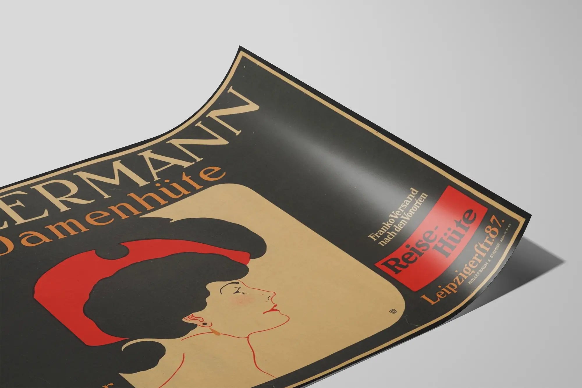 Affiche vintage Ehlermann - Chapeaux féminins stylés